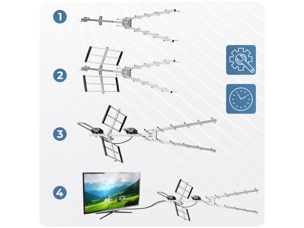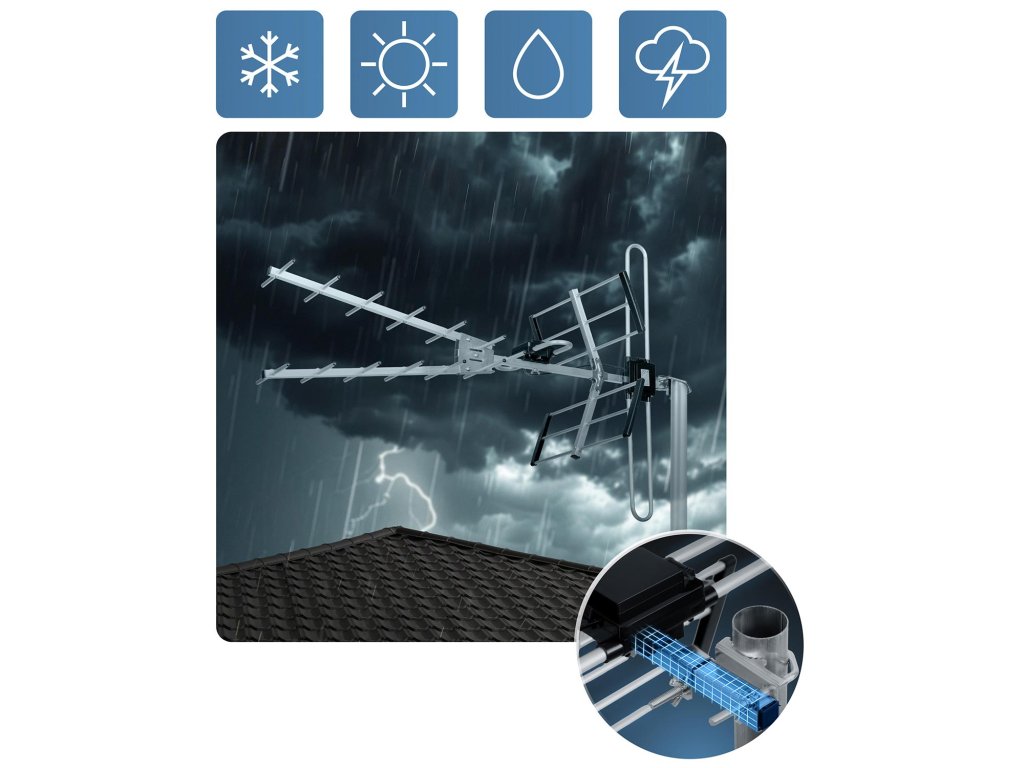 Anténa je vybavená inteligentným elektronickým systémom, ktorý optimalizuje príjem signálu, automaticky sa prispôsobujúci podmienkam.