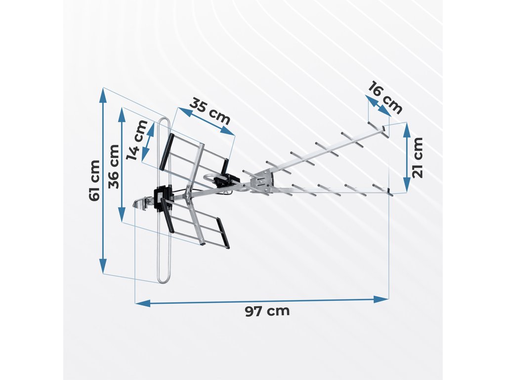 Vďaka tak veľkému dosahu bez problémov prijmete kanály aj z vzdialených vysielačov – aj na prímestských a vidieckych oblastiach.