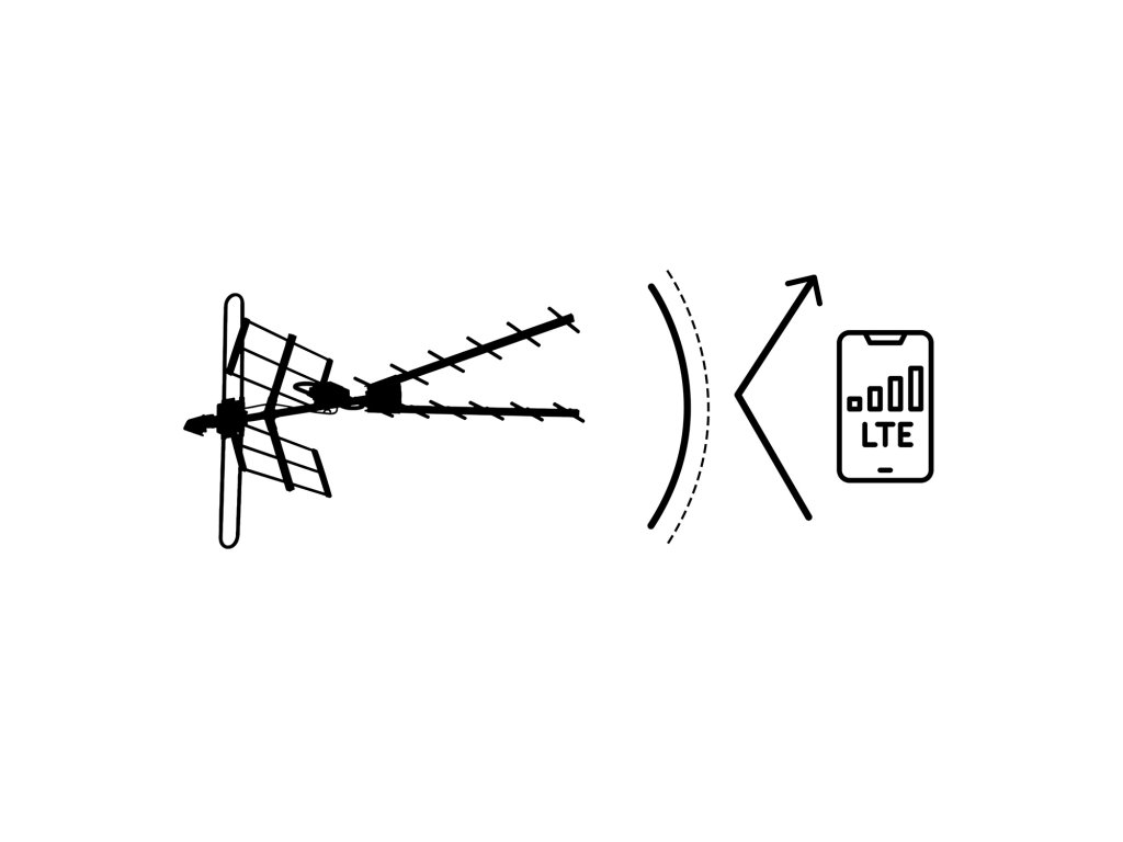 Anténa má vstavaný LTE filter, ktorý eliminuje interferencie spôsobené mobilnými sieťami (napr. 4G/5G).