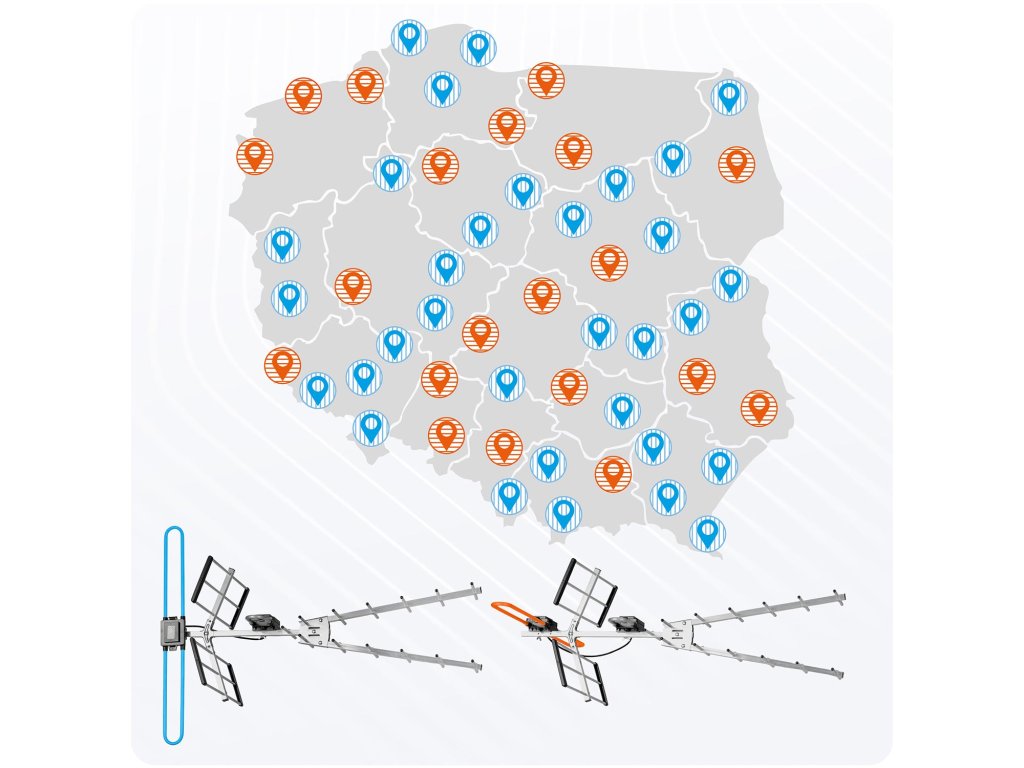 Televízny signál v Poľsku je vysielaný v rôznych polarizáciách – naša anténa si poradí so všetkými.