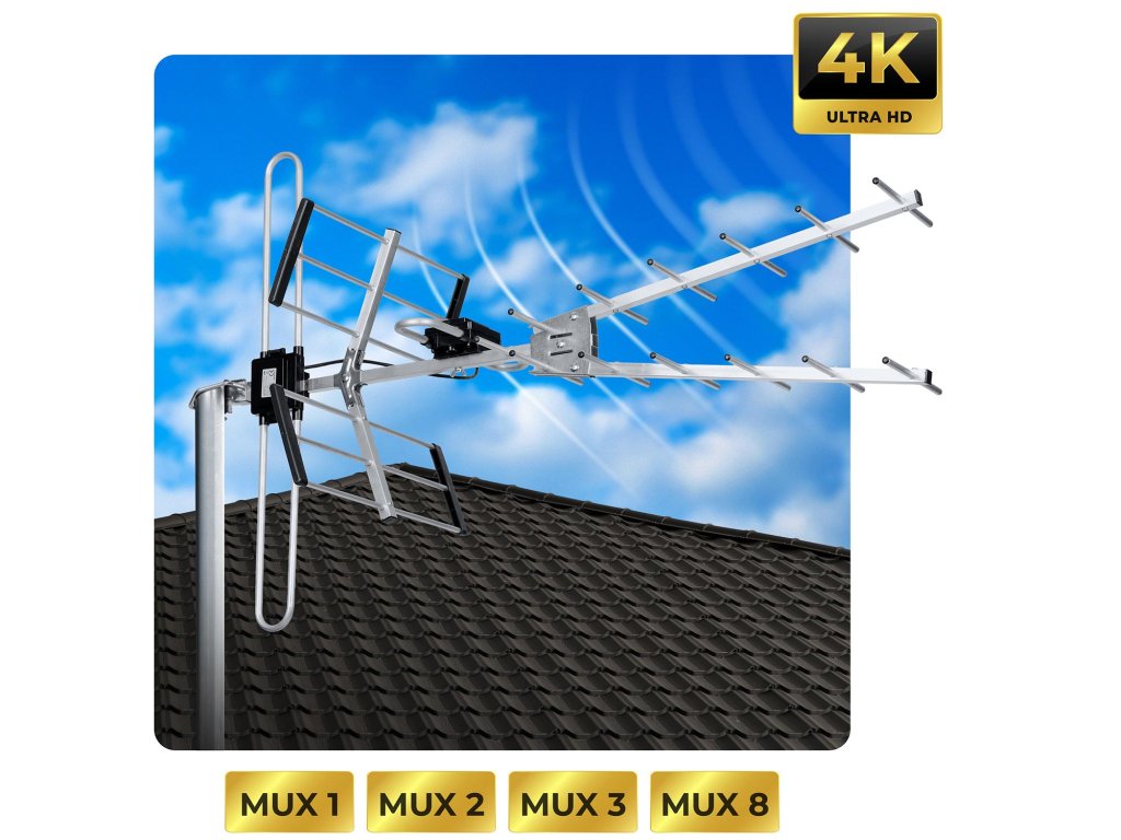 Vonkajšia smerová anténa na príjem pozemnej televízie ultra HD 4K pasívna