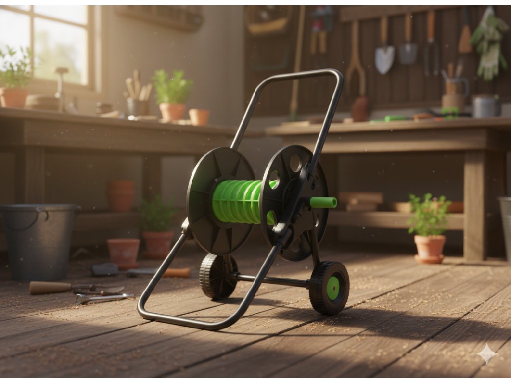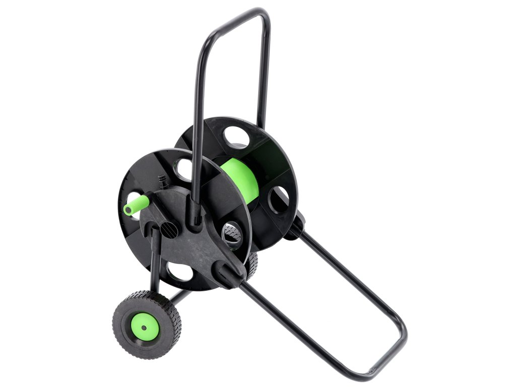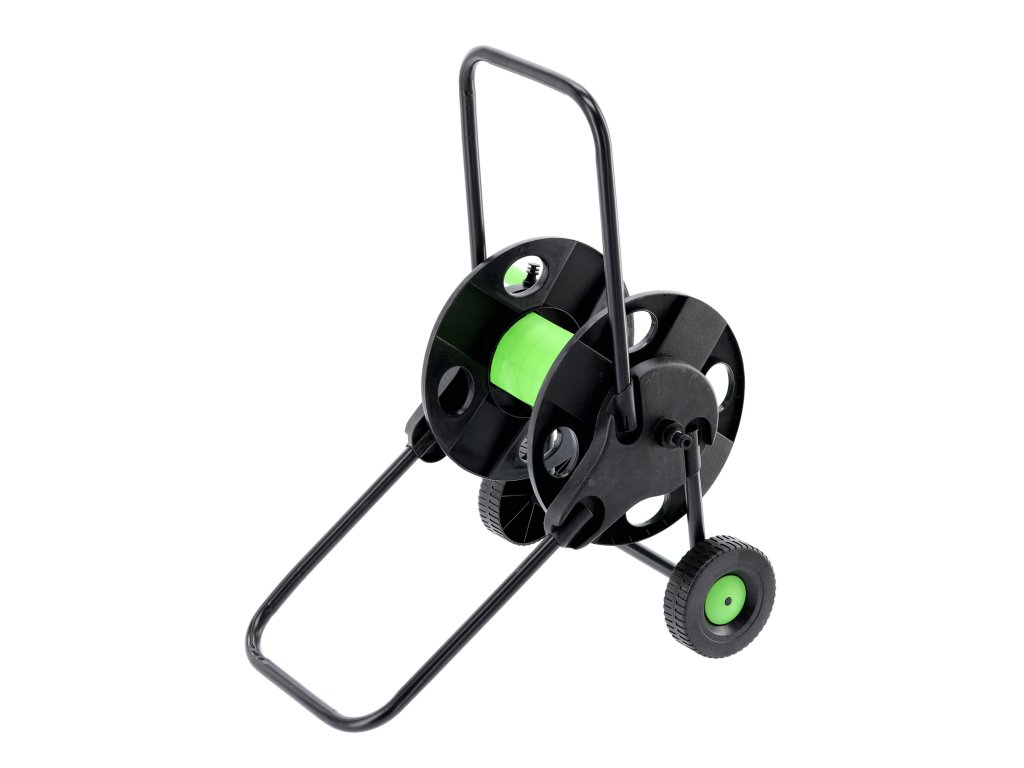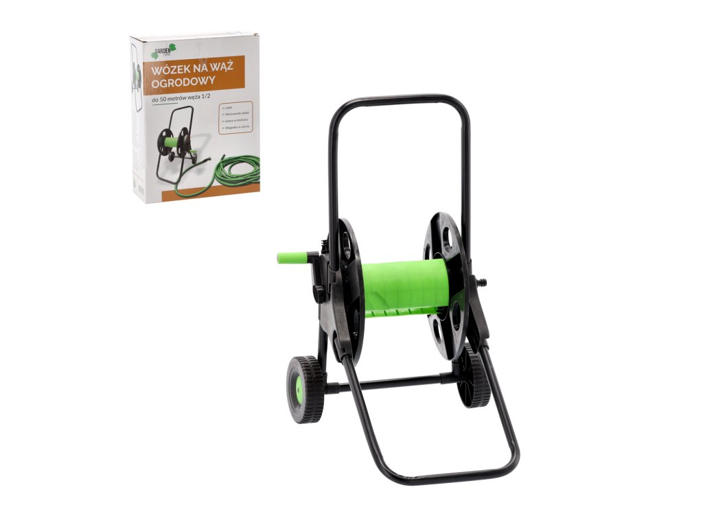 Vozík na záhradnú hadicu je ideálnym riešením na večný problém každej záhrady – skrútená vodná hadica. Vďaka nemu sa vyhnete záhybom a zamotaniu hadice a jej skladovanie sa stane jednoduchým a pohodlným. Vozík je vyrobený z veľmi odolných materiálov: oceľ s práškovým náterom (rám) a bubon vyrobený z ABS plastu, čo zaručuje odolnosť voči všetkým poveternostným podmienkam a UV žiareniu. Vďaka svojej konštrukcii umožňuje vozík navinutie až 50 m záhradnej hadice 1/2".