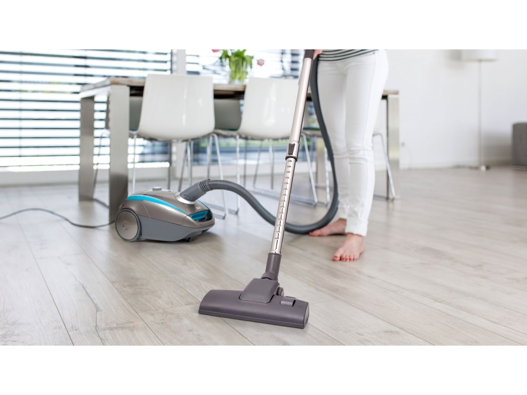 Gumené kolieska vysávača Teesa chránia podlahu pred poškriabaním a dlhý 5-metrový kábel, ktorý zaručuje dosah 8 metrov, umožňuje čistiť väčšie plochy bez nutnosti prepínania zástrčiek.