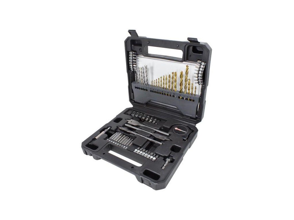 Sada vrtákov, bitov, nástavcov v kufri od firmy FORCEKRAFT obsahuje nástroje vyrobené z vysoko kvalitnej ocele.