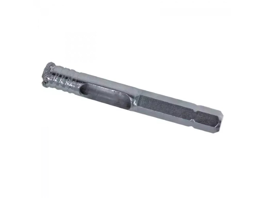 Veľkosť zobrazená nafotografii je príklad.Diamantové vrtáky na kameninu, terakotu, sklo, bielu keramickú sľudu, kameň. Vŕtačky si počas vŕtania vyžadujú chladenie. Prídavná drážka v telese vrtáka uľahčuje prívod chladiacej kvapaliny. Použitá šesťhranná stopka.