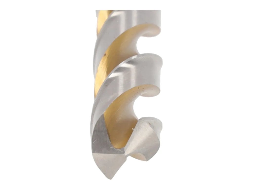 Kovový vrták s valcovou stopkou. Vrták z rýchloreznej ocele HSS (oceľ 4341). Brúsená drážka zabezpečuje účinný odvod materiálu z otvoru.