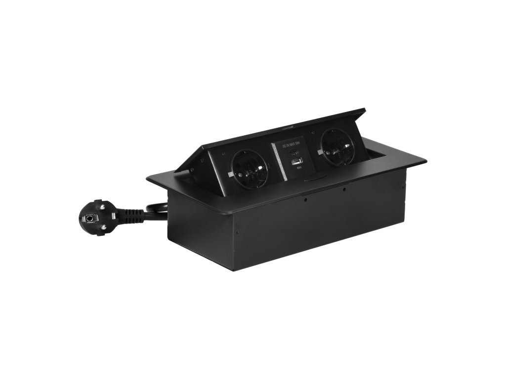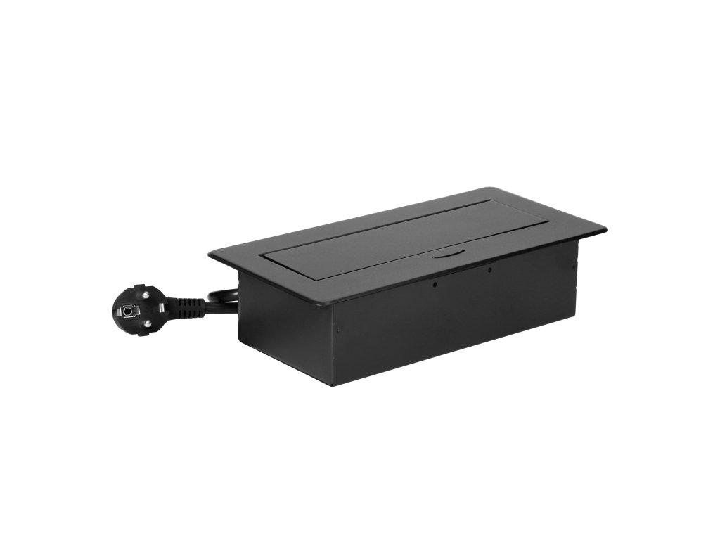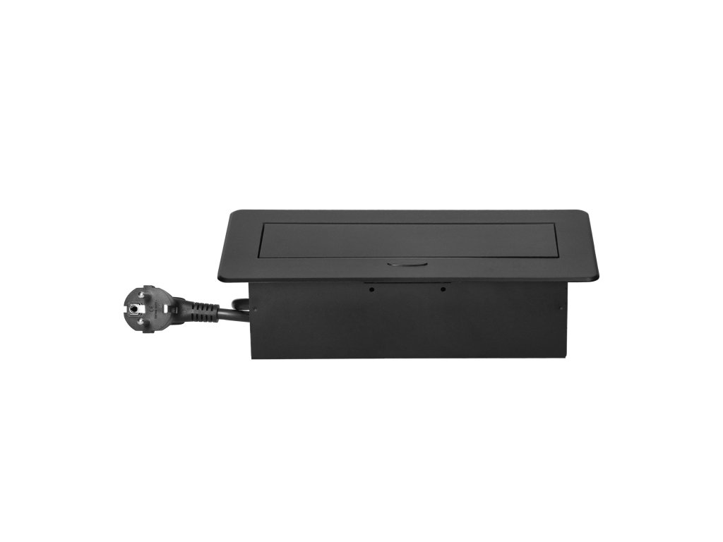 Čierna, práškovo lakovaná zásuvka dobre ladí s povrchovou úpravou väčšiny nábytku a bude farebne ladiť s väčšinou aranžmánov. Rafinovaný tvar robí z použitia nábytkovej vstavanej zásuvky štýlovú alternatívu k bežným predlžovacím káblom alebo rozvodnej lište a efektívne sa vyhýba zamotaným káblom.