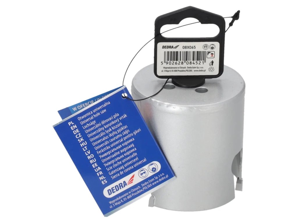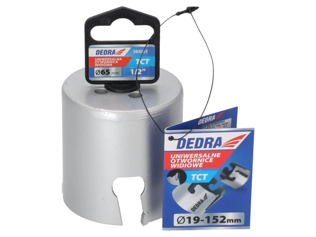 Univerzálna píla na diery je nepostrádateľným nástrojom v dielni pre domácich majstrov. Špeciálna konštrukcia reznej hrany zvyšuje pevnosť píly a zlepšuje vedenie diery.Pomocou skľučovadiel HEX 10 mm 1 /2" 08X001 (odporúčané pre otvory: 08X019-08X030) a 5/8" skľučovadiel 08X002 (odporúčané pre otvory: 08X032-08X152) je možné používať píly na diery na vŕtačkách alebo vŕtačkách.Pomocou skľučovadla SDS+ 08X003 (odporúčanépre otvory: 08X 032 -08X152) je možné používať pílu na otvory DEDRA 08 X widespread s príklepovou vŕtačkou v režime bez príklepu.Na zlepšenie rezného účinku a zvýšenie pevnosti majú otvory niekoľko vidlicových vložiek, ktoré účinne obrábajú materiál.Univerzálne pilotné vrtáky DEDRA 08 X možno s použitím vhodného pilotného vrtáka použiť na prácu v dreve, kovoch, nábytkových doskách, PVC, minerálnych materiáloch, ako sú keramickéobkladačky, pórobetón a silikáty.Na zvýšenie pevnosti otvorov je jadro vyrobené z vysokokvalitnejocele HCS č. 45 s hrúbkou 1,5 mm a zuby sú vyrobené z karbidu volfrámu so 6 % kobaltu (volfrámová oceľ YG 6X).Tým sa zlepšuje kvalita a trvanlivosť odrezkova zvyšuje sa účinnosť vŕtania.