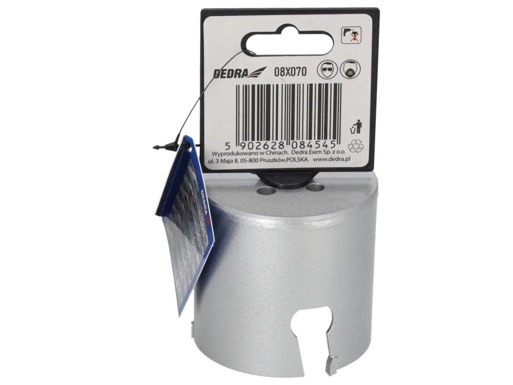 Univerzálna píla na diery je nepostrádateľným nástrojom v dielni pre domácich majstrov. Špeciálna konštrukciareznej hrany zvyšuje pevnosť píly a zlepšuje vedenie diery.Pomocou skľučovadiel HEX 10 mm 1 /2" 08X001 (odporúčané preotvory: 08X019-08X030) a 5/8" skľučovadiel 08X002 (odporúčané pre otvory: 08X032-08X152) je možné používať píly na diery s vŕtačkami alebo vŕtačkami.Pomocou skľučovadla SDS+ 08X003 (odporúčanépre otvory: 08X 032 - 08X152)je možné používať pílu na otvory DEDRA 08 X widespread s príklepovou vŕtačkou v režime bez príklepu.Na zlepšenie rezného účinku a zvýšenie pevnosti majú otvory niekoľko vidlicových vložiek, ktoré účinne obrábajú materiál.Univerzálne pilotné vrtáky DEDRA 08 X možno s použitímvhodného pilotného vrtáka použiť na prácu v dreve, kovoch, nábytkových doskách, PVC, minerálnych materiáloch, ako sú keramické obkladačky, pórobetón a silikáty.Na zvýšenie pevnosti otvorov je jadro vyrobené z vysokokvalitnejocele HCS č. 45 s hrúbkou 1,5 mm a zuby sú vyrobené z karbidu volfrámu so 6 % kobaltu (volfrámová oceľ YG 6X).Tým sa zlepšuje kvalita a trvanlivosť odrezkov a zvyšuje sa účinnosť vŕtania.