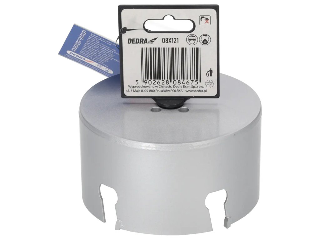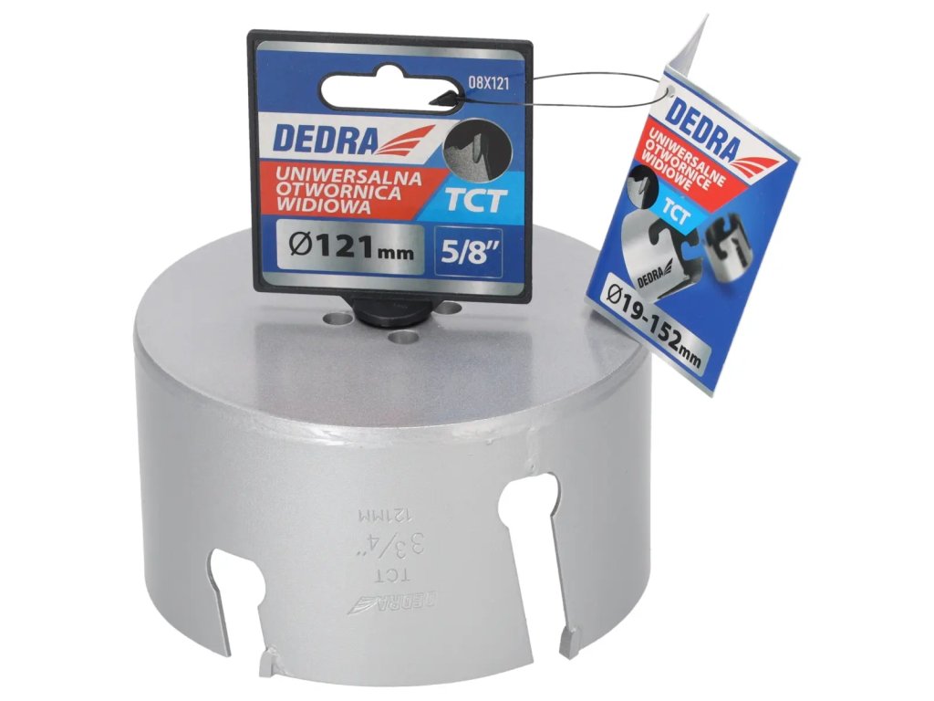 Skutočná veľkosť je uvedená v popise produktu.Univerzálna píla na diery je nepostrádateľným nástrojom v dielni pre domácich majstrov. Špeciálna konštrukciareznej hrany zvyšuje pevnosť píly a zlepšuje vedenie diery.Pomocou skľučovadiel HEX 10 mm 1 /2" 08X001 (odporúčané pre otvory: 08X019-08X030) a 5/8" skľučovadiel 08X002 (odporúčané pre otvory: 08X032-08X152) je možné používať píly na diery na vŕtačkách alebo vŕtačkách.Pomocou skľučovadla SDS+ 08X003 (odporúčanépre otvory: 08X 032 -08X152) je možné používať pílu na otvory DEDRA 08 X widespread s príklepovou vŕtačkou v režime bez príklepu.Na zlepšenie rezných účinkov a zvýšenie pevnosti majú otvory niekoľko vidlicových vložiek, ktoré účinne obrábajú materiál.Univerzálnepilotné vrtáky DEDRA 08 X možno s použitím vhodného pilotného vrtáka použiť na prácu v dreve, kovoch, nábytkových doskách, PVC, minerálnych materiáloch, ako sú keramické obkladačky, pórobetón a silikáty.Na zvýšenie pevnosti otvorov je jadro vyrobené z vysokokvalitnejocele HCS č. 45 s hrúbkou 1,5 mm a zuby sú vyrobené z karbidu volfrámu so 6 % kobaltu (volfrámová oceľ YG 6X).Tým sa zlepšuje kvalita a trvanlivosť odrezkov a zvyšuje sa účinnosť vŕtania.