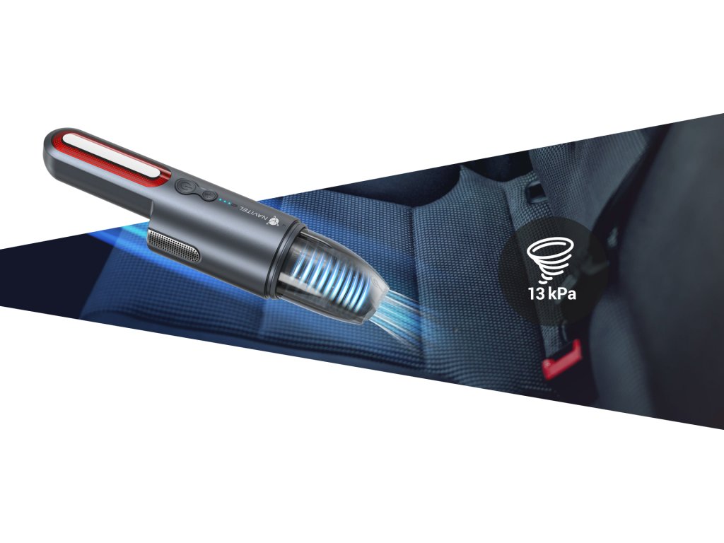 Motor so sacím výkonom až 13 kPa vám umožní odstrániť takmer všetky nečistoty a omrvinky vo vašom aute alebo domácnosti.