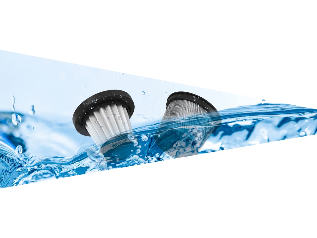 Filter vysávača je odnímateľný a umývateľný, takže ho môžete znova použiť pri ďalšom vysávaní. Nezabudnite vyčistiť a vysušiť filter po každom použití, čím si zachováte najvyšší sací výkon pri ďalšom čistení.
