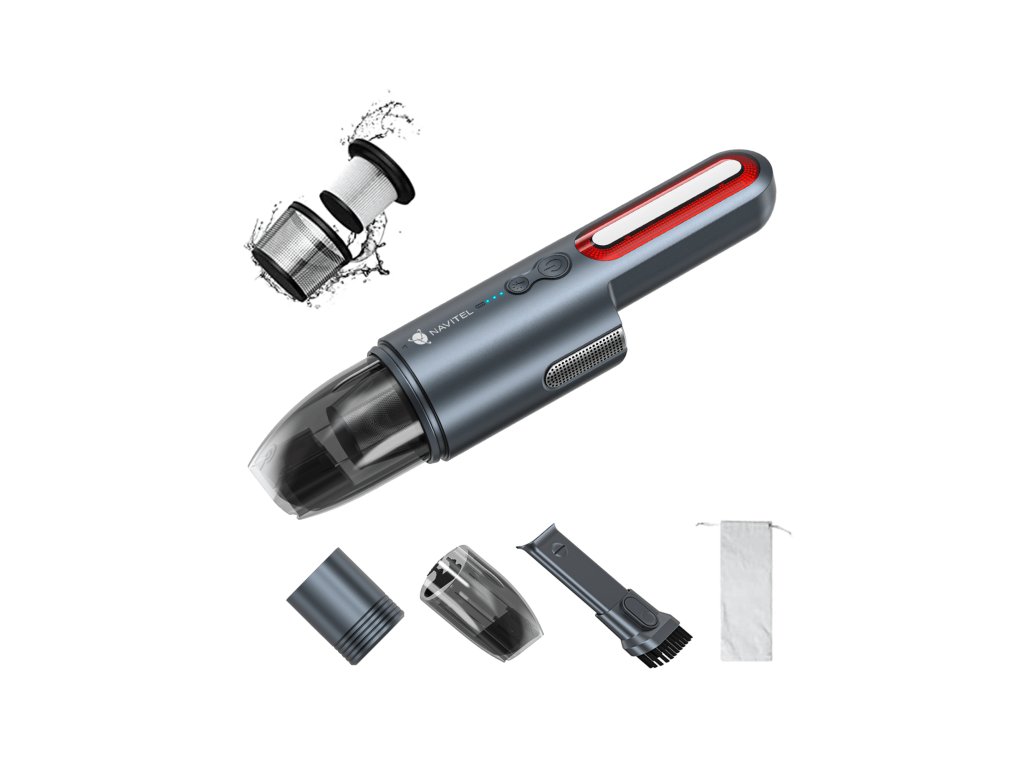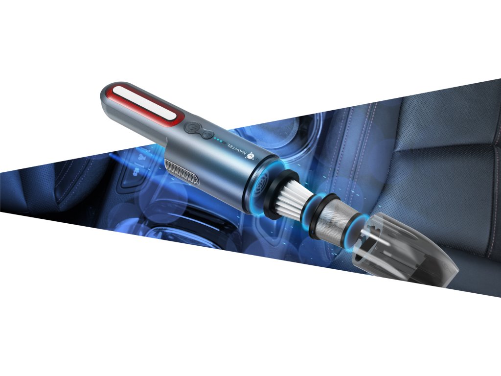 NAVITEL CL100 je prenosný, bezdrôtový ručný vysávač, ktorý je ideálny na rýchle upratovanie auta, domova alebo kancelárie. Kompaktná veľkosť vysávača vám umožní schovať ho do odkladacej priehradky, skrine, auta alebo aj na pracovný stôl. Vďaka technológii HEPA filtrácie NAVITEL CL100 zastavuje drobné prachové častice, ktoré sa počas prevádzky neuvoľňujú do ovzdušia. Šikovná nádoba je vhodná na zber drobného odpadu.
