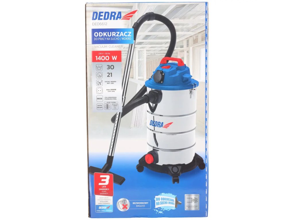 Vysávač DEDRA DED6612 je univerzálne zariadenie, ktoré sa osvedčí ako doma, tak v garáži či dielni.