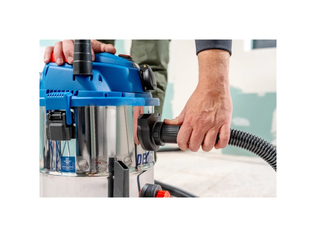 Umožňuje prácu na sucho a na mokro, čo z neho robí mimoriadne všestranné zariadenie na odstraňovanie rôznych nečistôt. Perfektne si poradí s prachom, jemným prachom a trieskami, ako aj s rozliatymi kvapalinami či blatom, pričom zabezpečuje efektívnosť v rôznych podmienkach. Okrem toho odtok vody v zariadení umožňuje jednoduché a hygienické vyprázdnenie nádrže po práci s kvapalinami, čo významne urýchľuje proces čistenia a zvyšuje komfort používania.