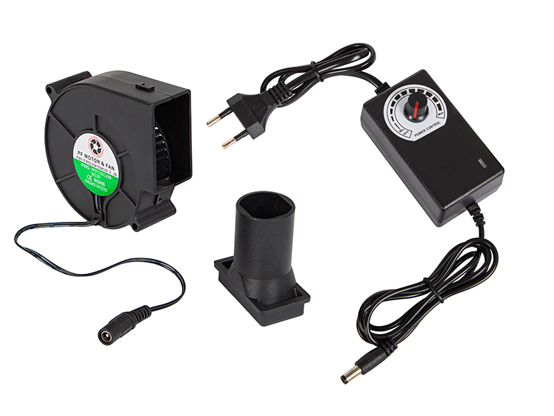 Montáž je jednoduchá a vyžaduje iba správne prepojenie jednotlivých častí. Najprv pripevnite výstupnú vzduchovú rúrku k dúchadlu, potom pripojte konektor dúchadla k riadiacej jednotke výkonu. Následne zariadenie zapojte do striedavého napájania a nastavte požadovanú rýchlosť.