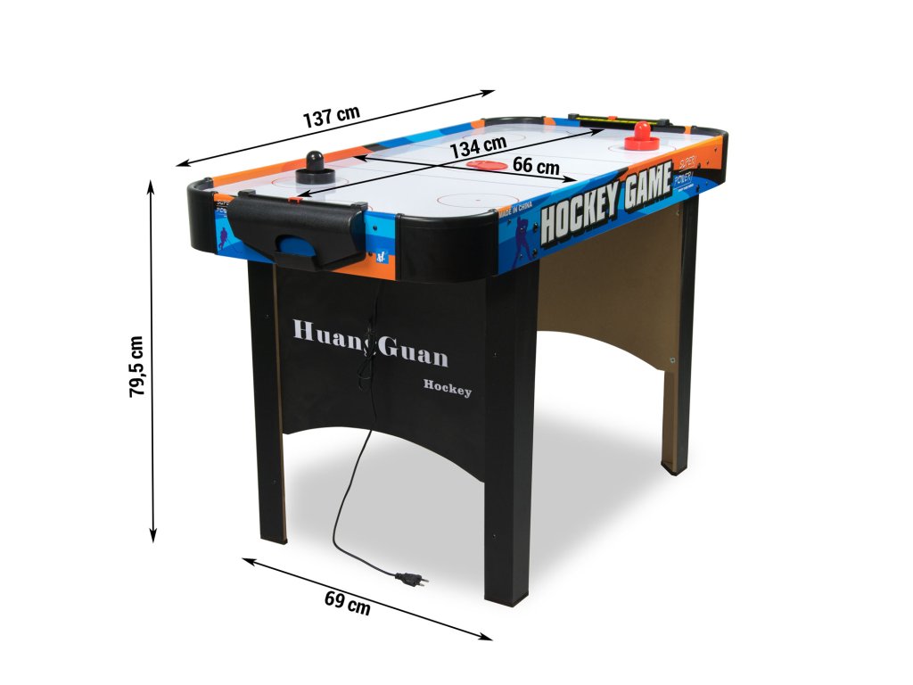 Svet hokejových bojov máte doslova na dosah ruky. Stôl Air Hockey postavíte mihnutím oka, pretože pevná stabilná konštrukcia je jednoduchá a intuitívna zároveň. Je navrhnutý tak, aby hráčom zaistil pohodlie počas mnohých dlhých hier. Čomu vďačí Air Hockey za takú dynamiku Stôl má zabudovaný mechanizmus Air Flow, teda špeciálny ventilátor, ktorý fúka vzduch cez perforovaný povrch a mierne nadvihne puk. Air Flow poskytuje efekt podobný posúvaniu puku po ľadovej vrstve.