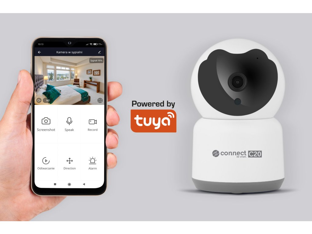 Na to, aby ste mali svoj domov pod dohľadom, nemusíte inštalovať pokročilý monitorovací systém. Na správne fungovanie kamery Connect C20 potrebujete len domácu sieť Wi-Fi a špecializovanú aplikáciu TuyaSmart, ktorá je k dispozícii v obchode Play a iOS a pomáha spravovať všetky kamery v domácnosti. V aplikácii môžete tiež zdieľať prevádzku fotoaparátu so zvyškom domácnosti.