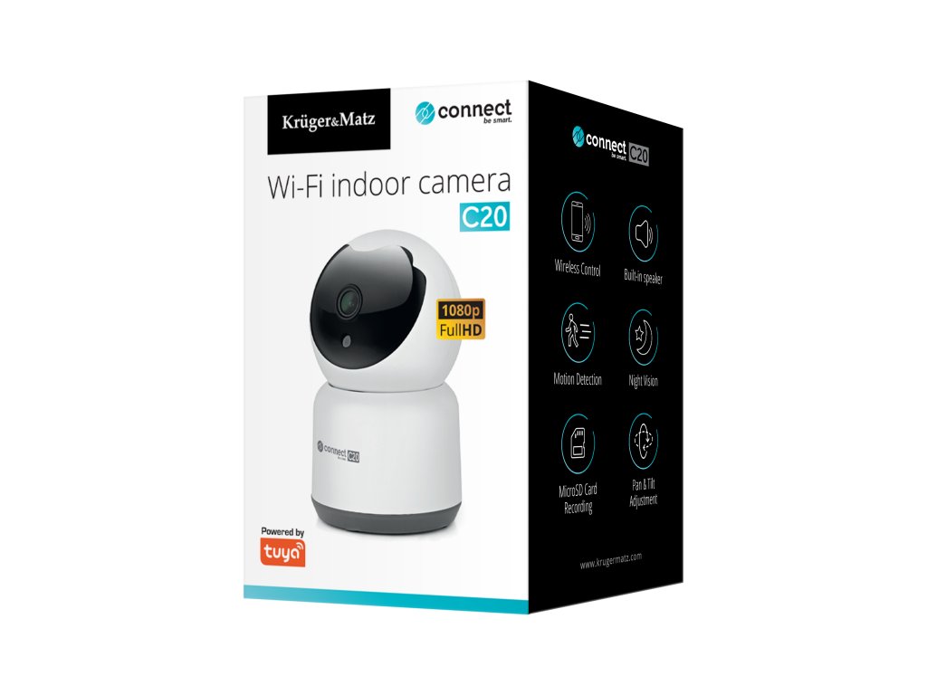 Kruger&Matz Connect C20 vám umožní náhľad do ktorejkoľvek miestnosti vo vašom dome. Dokonalú kvalitu obrazu zaručuje objektív s rozlíšením 2 MPx, ktorý v kombinácii s plynulosťou 20 FPS umožňuje vysielať obraz v rozlíšení Full HD.