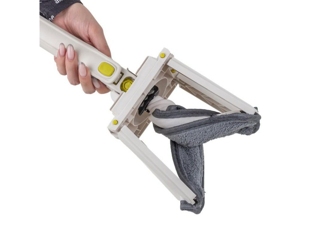 Díky motýľovému mechanizmu nie je potrebné dávať dolu pad na vymačkanie – stačí jeden pohyb rukou a mop je pripravený na ďalšiu prácu.