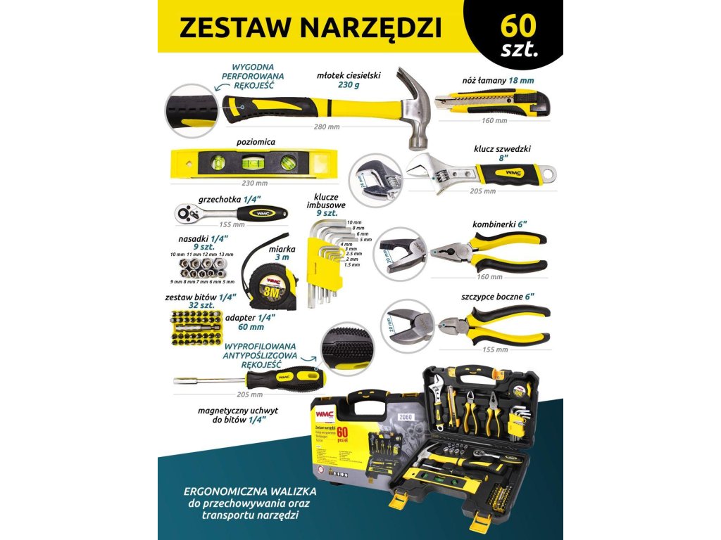 Wmc sada oceľových 60ks hlavice bity kliešte