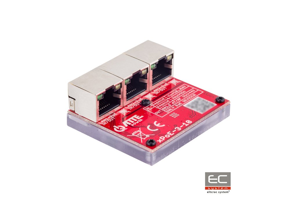Určený na montáž do krabice pod kameru switch xPoE-3-10 ATTE je 3 portový sieťový prepínač, určený na spoluprácu s IP kamerami a sieťovými zariadeniami, podporujúcimi štandard napájania PoE PASSIVE. Switch xPoE-3-10 plní funkciu nespravovaného extendéra – opakovača počítačovej siete LAN a napájania PoE (ang. Power over Ethernet). Vďaka zabudovaným elektronickým obvodom switch umožňuje posilnenie signálu prenosu dát v sieti LAN na vzdialenosti dlhšej ako 100 metrov. Umožňuje regeneráciu sieťového signálu, pričom prenáša aj napájanie PoE na určené výstupy. xPoE-3-10 je sieťový prepínač značky ATTE, ktorý môže realizovať funkciu aktívneho rozdeľovača, v situácii, keď užívateľ potrebuje spustiť niekoľko PoE prijímačov (napr. niekoľko IP kamier monitorovania) alebo vytvoriť dodatočné sieťové vetvy. Stojí za zmienku, že konštrukcia zariadenia zároveň predstavuje jeho kryt. Bola vytvorená spojením laminátu s frézovaným polykarbonátom, čo zaručuje ochranu, izoláciu pri čo najmenších rozmeroch zariadenia. Vďaka špeciálnemu nastaveniu konektorov RJ-45, pripojené sieťové káble nezaberajú dodatočné miesto.