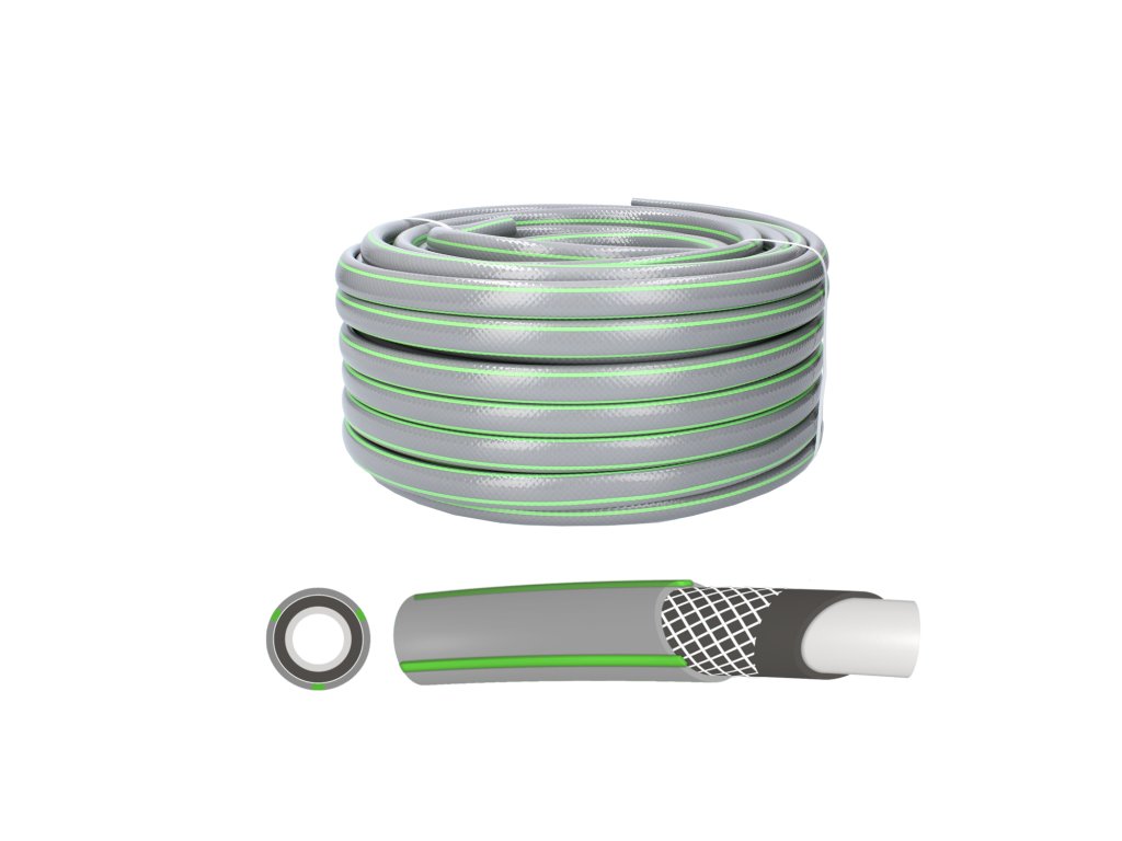 Záhradná hadica PREMIUM PLUS s dĺžkou 30 m a priemerom 3/4" je vynikajúcou voľbou pre všetky záhradné práce. Vyrobená v Poľsku, hadica sa vyznačuje vysokou kvalitou a pružnosťou, vďaka čomu je odolná voči poškodeniam a ľahko sa používa. Vyrobená zo 4-vrstvového pružného PVC, obsahujúceho polyvinylchlorid, tereftalát a ďalšie komponenty, a navyše spevnená textilným opletením, poskytuje spoľahlivosť pri každodennom používaní. Hadica je určená na čerpanie vody s pracovným tlakom 8 bar (pri 20°C), a jej pretrhnutý tlak je nad 24 bar (pri 20°C). Hadica funguje v širokom rozsahu teplôt, od -10°C do +60°C.