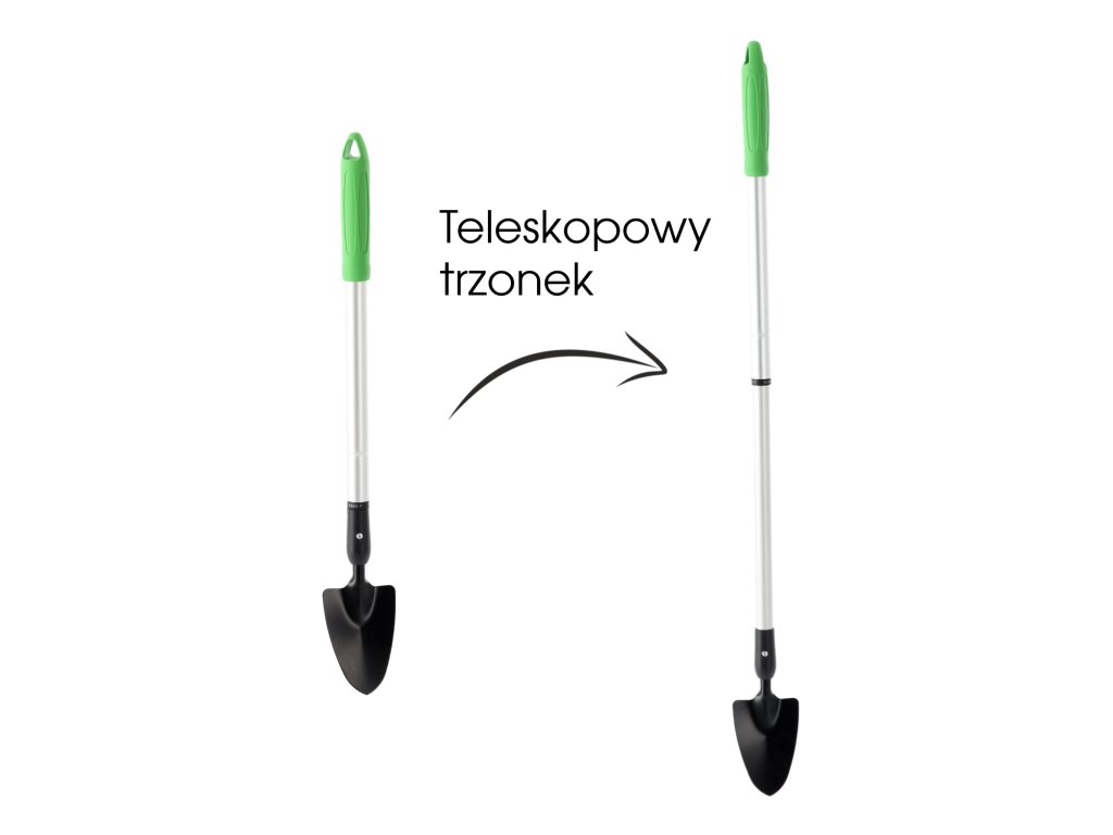 Záhradná lopatka s teleskopickou rukoväťou je funkčný nástroj, ktorý uľahčuje sadenie, presádzanie a starostlivosť o rastliny. Vďaka nastaviteľnej dĺžke rukoväte umožňuje prácu v pohodlnej, vzpriamenej polohe, minimalizujúc zaťaženie chrbta. Odolná čepeľ vyrobená z vysoko kvalitnej ocele zaručuje presné spracovanie a ergonomická rukoväť poskytuje komfort aj pri dlhodobom používaní.