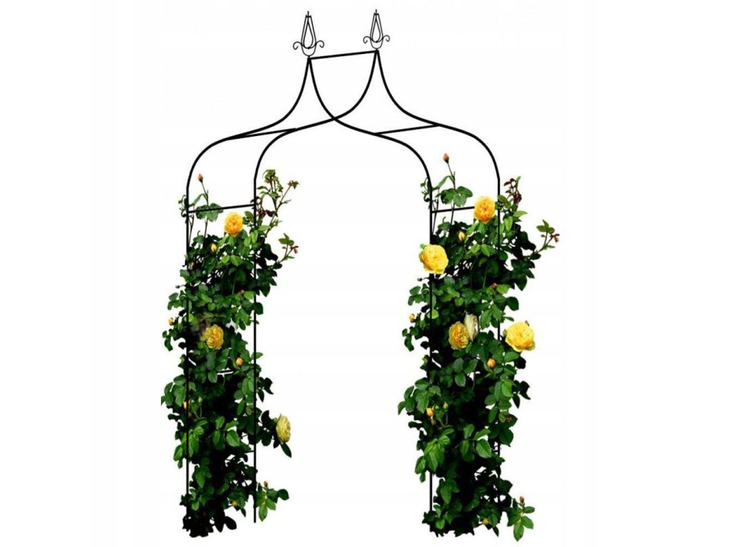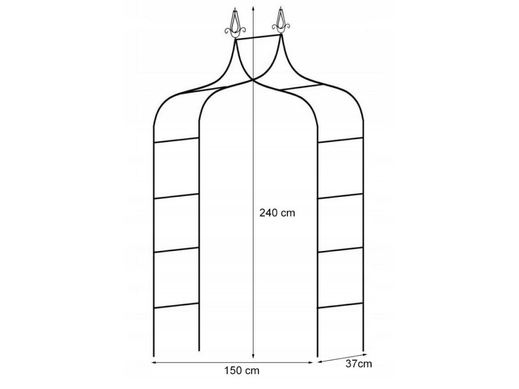 Pergola s výškou 240 cm má dva dekoratívne zakončenia v podobe hrotov. Tým sa odlišuje od všetkých ostatných tohto typu pergol dostupných na trhu. Je vyrobená z kovu, je dostatočne pevná, aby udržala väčšinu popínavých rastlín. Šírka 150 cm a výška 240 cm zabezpečujú stabilitu, ktorú môže ešte posilniť hlbším zakopanim do zeme.• Rozmery: 150x37x240 cm (š x h x v)