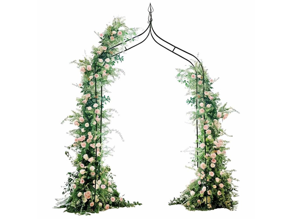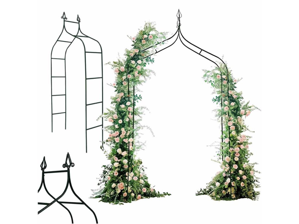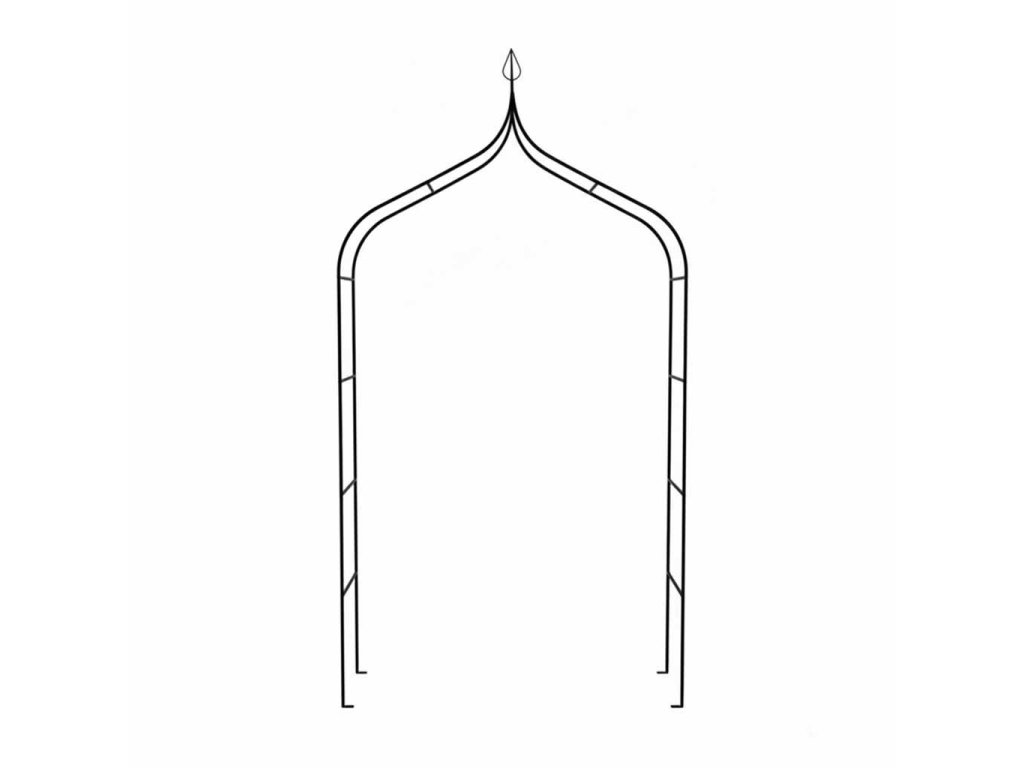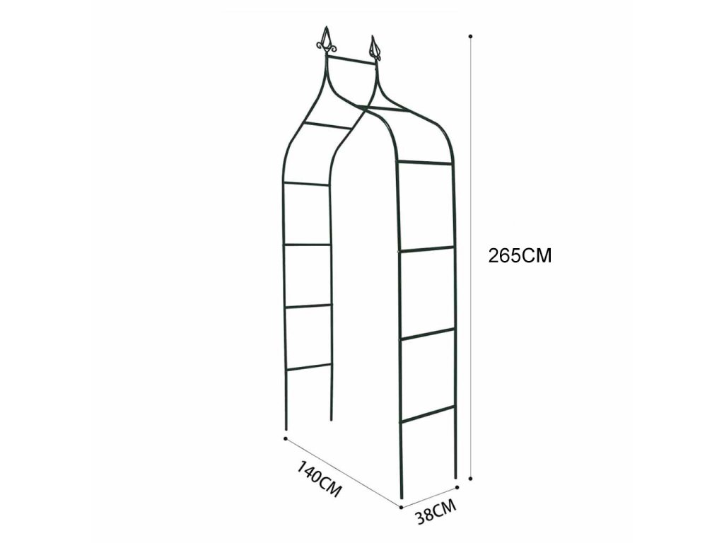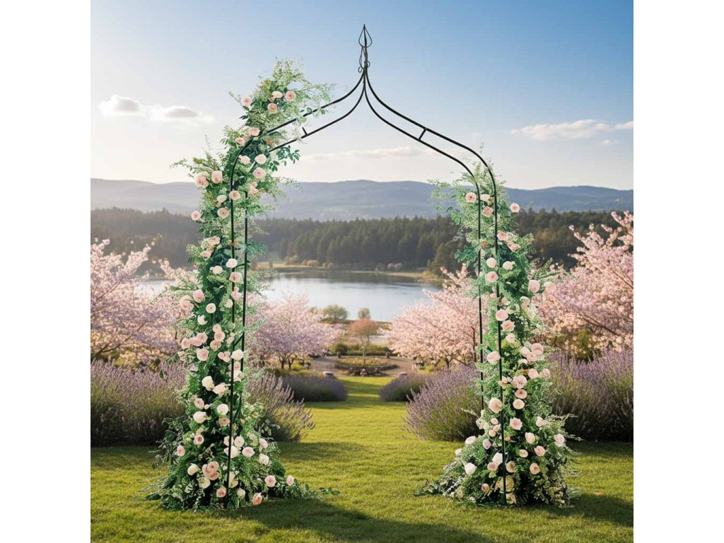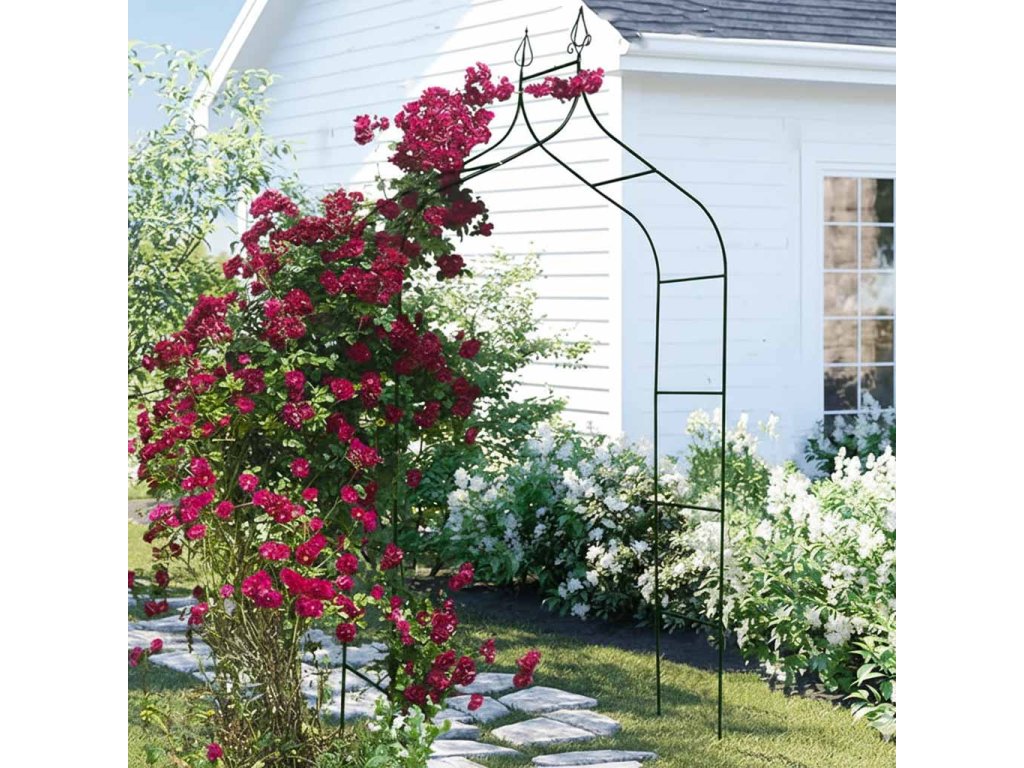 - Kovový (oceľový) záhradný oblúk vytvára rám pre popínavé rastliny a organizuje priestor v ľahkej forme