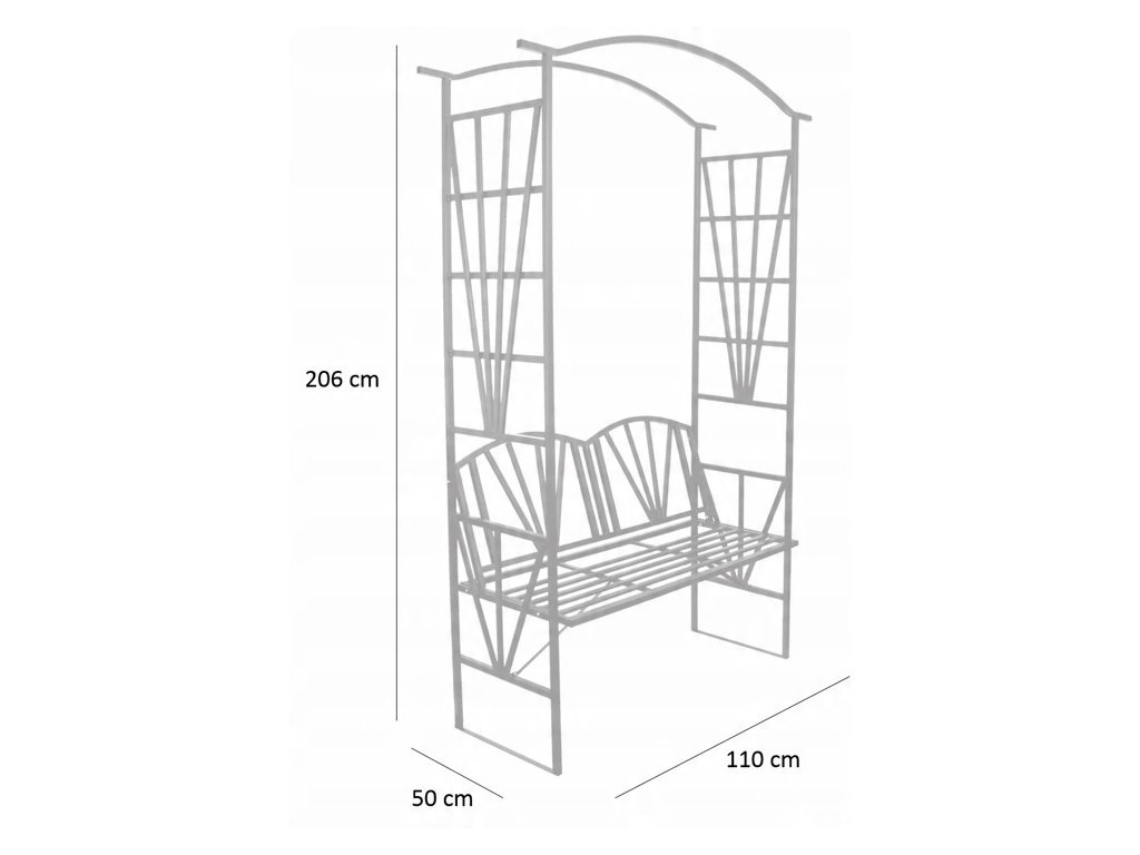 Záhradná pergola na popínavé rastliny s lavičkou je prvok, ktorý môže rýchlo zmeniť váš záhradný priestor. Veľmi pevná konštrukcia s pohodlnou lavičkou poslúži na mnoho sezón. Je to skvelý prvok na výsadbu popínavými rastlinami, ktoré sa po pevnej konštrukcii budú môcť plne prejaviť svojou krásou. Ideálne miesto na chvíľu relaxácie medzi zeleňou.• Rozmery: 114 x 45 x 208 cm (š x h x v)
