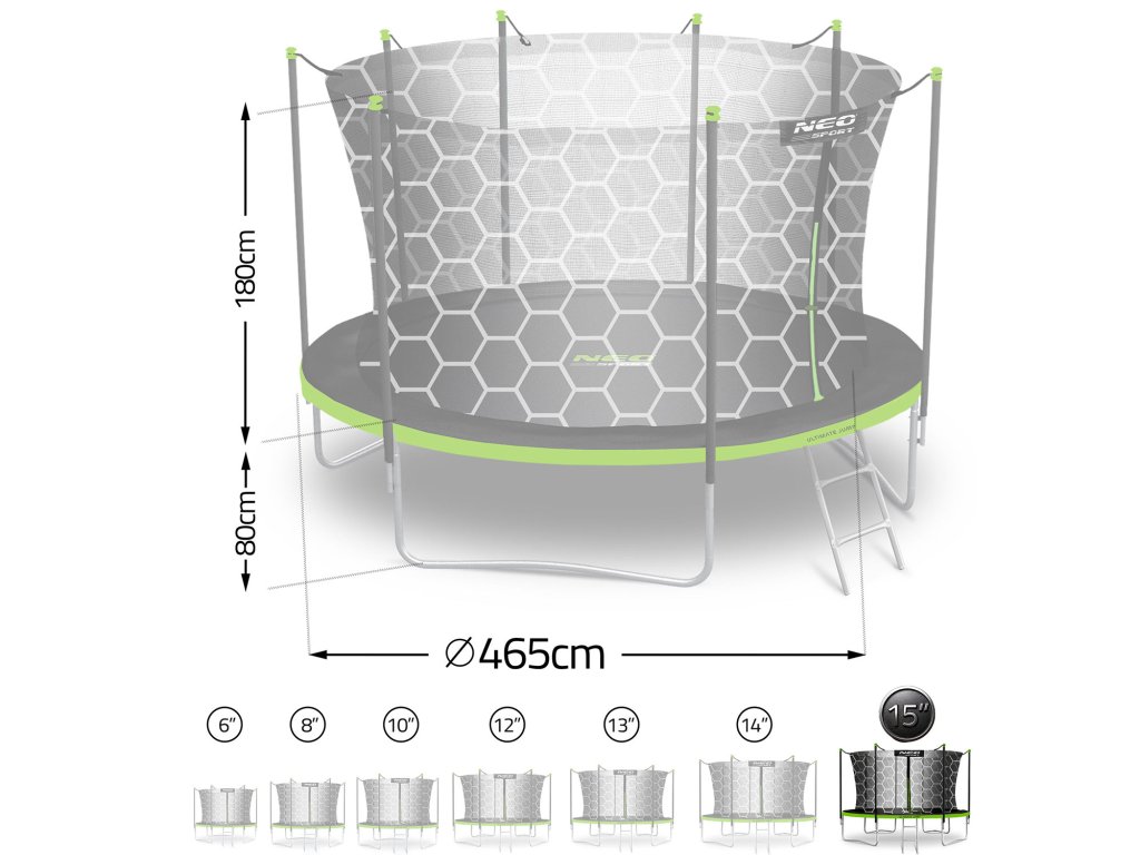 Záhradná trampolína 15ft/465cm s vnútornou sieťou a rebríkom Neo-Sport