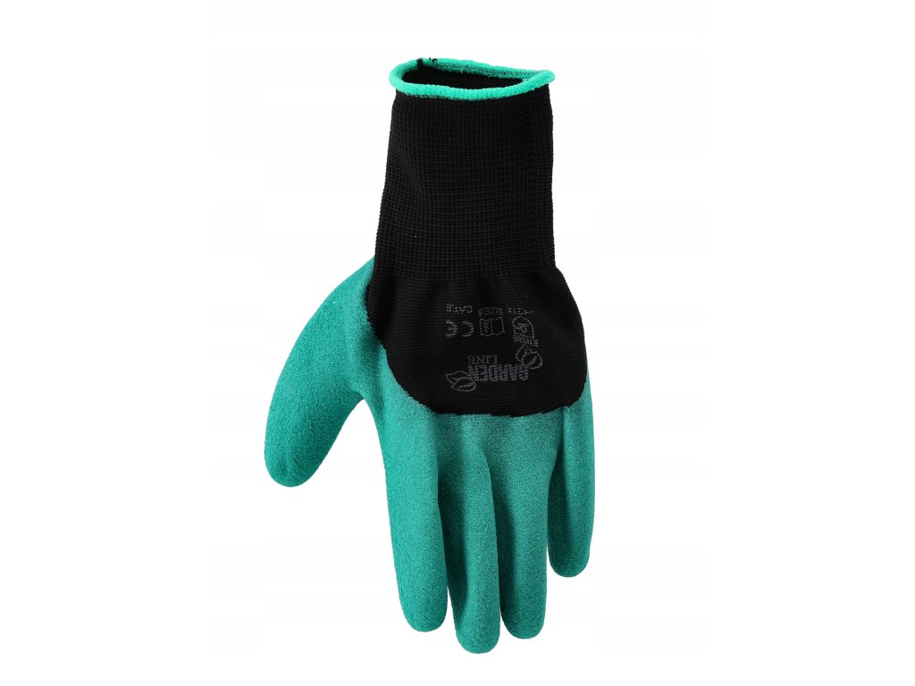 Ochranné rukavice s pazúrikmi z polyesteru potiahnuté latexom.EN 388 - norma týkajúca sa mechanickej odolnosti