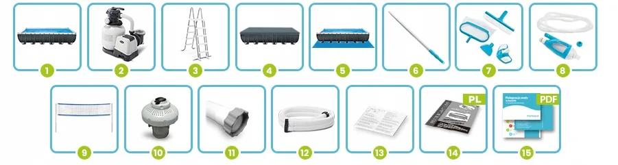 Bazén s rámom 975 x 488 x 132 cm Sada 8v1
