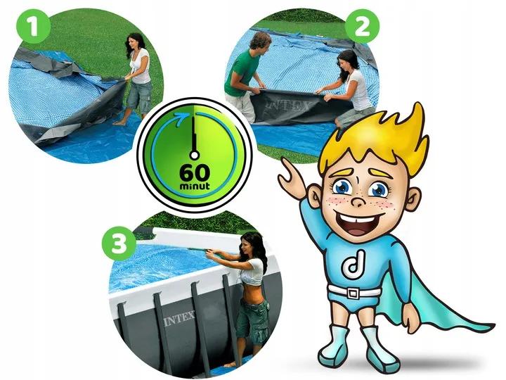 Bazén je ľahko montovateľný. Sám si ho pripravíš bez použitia náradia za niekoľko okamihov.