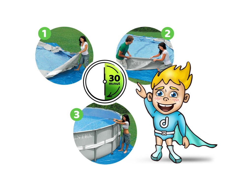 Bazén je ľahký na montáž. Pripravíš ho bez použitia náradia v priebehu niekoľkých chvíľ.