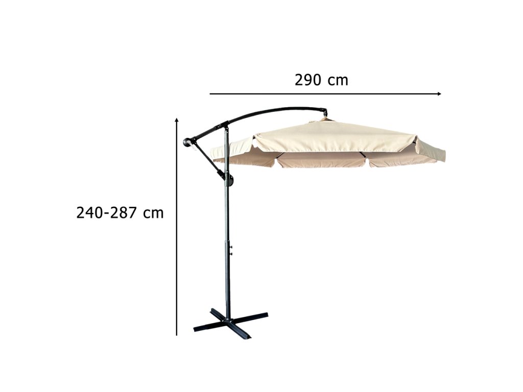 Okrúhla strieškaslnečníka s pôsobivým priemerom 290 cm účinne chráni pred slnečnýmilúčmi a nečakaným dažďom. S celkovou výškou 287cm ponúka slnečník veľký úžitkovýpriestor, ktorý je vhodný pre záhradné zostavy aj priestranné terasy.