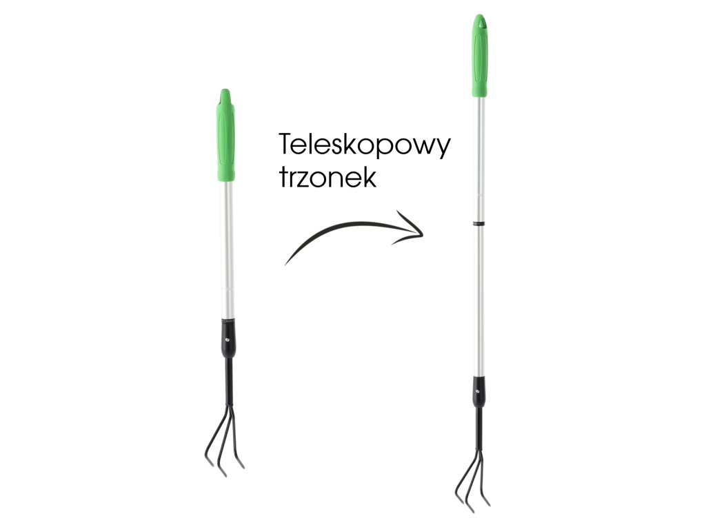 Záhradný kultivátor s teleskopickou rúčkou je spoľahlivý nástroj na kyprenie a prevzdušňovanie pôdy, ideálny na prípravu záhonov a kvetinových záhonov. Nastaviteľná rúčka umožňuje prácu v pohodlnej pozícii, čím redukuje záťaž na chrbát a ruky. Odolné, oceľové zuby efektívne rozvoľňujú aj zhutnenú pôdu a ľahká a ergonomická konštrukcia zaisťuje pohodlie pri používaní.