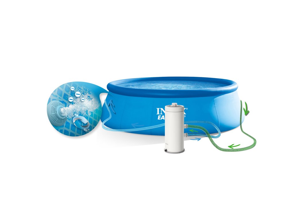 Bazén udržuje stabilitu vďaka sile obmientnej vody a nafukovaciemu prstencu - jednoduchý na montáž.