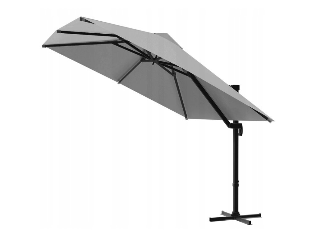 Slnečník je vyrobený z vysokokvalitného materiálu. Strecha je vyrobená z vodoodolného materiálu. Náš produkt je vybavený solídnym rámom z práškovo lakovanej ocele. V streche sa nachádza špeciálny ventilačný otvor. Navyše slnečník obsahuje vodoodolné púzdro vyrobené z polyesteru v čiernej farbe.