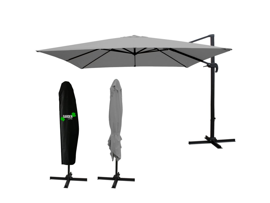 ZÁHRADNÝ SLNEČNÍK "ROMA" 3 x 3 M SIVÝ S KRYTOM *5392