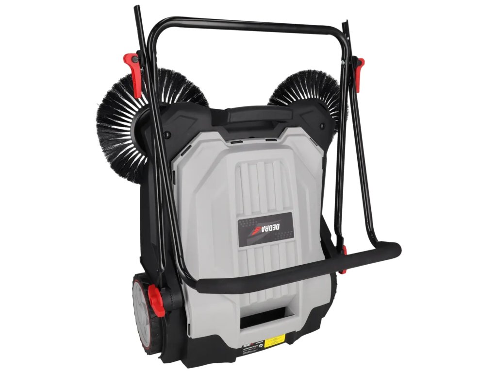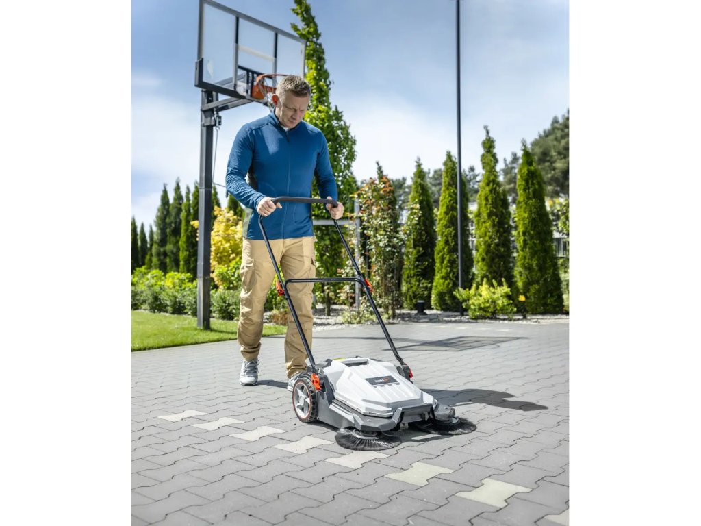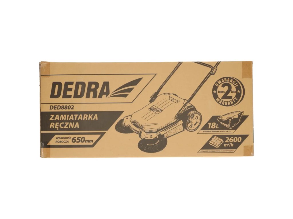 Ručná lopatka je ideálnym nástrojom pre všetkých, ktorí majú v záhrade veľké príjazdové cesty alebo chodníky. Ručný zametací stroj sa môže používať aj vo vnútorných priestoroch, ako sú garáže, kôlne a sklady. Vďaka dvom kefámzametacístroj pokryje naraz šírku 650 mm, čím zabezpečí rýchlu a dôkladnú prácu, ktorú nie je možné dosiahnuť s bežnou kefou alebometlou. Ručný zametací stroj DEDRA DED8802 je vynikajúcou alternatívou k fúkačom lístia alebo vysávačom. Zametací stroj má manuálny mecha nizmus, t. j. rotačný pohyb kief sa vytvára pri ich pohybe dopredu, čo vám uľahčujep r ácu . Mäkká povrchová úprava rukovätezaisťuje vysokú úroveňpohodlia aj počas dlhého používania. Nastaviteľný uhol volantu umožňuje polohovať rukoväť v súlade s od porom vášho tela, čo vedie k lepšej ergonómii, väčšiemu pohodliu a odstráneniu bolesti svalovspôsobenej prácou vo vynútenej polohe. Vďaka sklopnej rukoväti sa so zametacím strojom ľahko manipuluje alebo prepravuje a zaberá málo miesta. Zametací stroj má zabudovaný 18-litrový zásobník, ktorý zaručuje dlhý pracovný čas bez potreby likvidácie. Ručný zametací stroj DED8802 má 4 kolesá. Zadné kolesá s priemerom 200 mm zabezpečujú stabilitu a istú ovládateľnosť, zatiaľ čo menšie predné kolesá s priemero m 50 mm zlepšujú manévrovateľnosť. Má 3 kefy-2 bočné kefy na strhávanie materiálu do zásobníka a zadnú kefu na odstraňovanie vynechaného materiálu. Šírka pásu 650 mm umožňuje pokrytie až 2 600 m2/h, čo je vynikajúce, najmä preto, že zametanie je prakticky bez námahy.