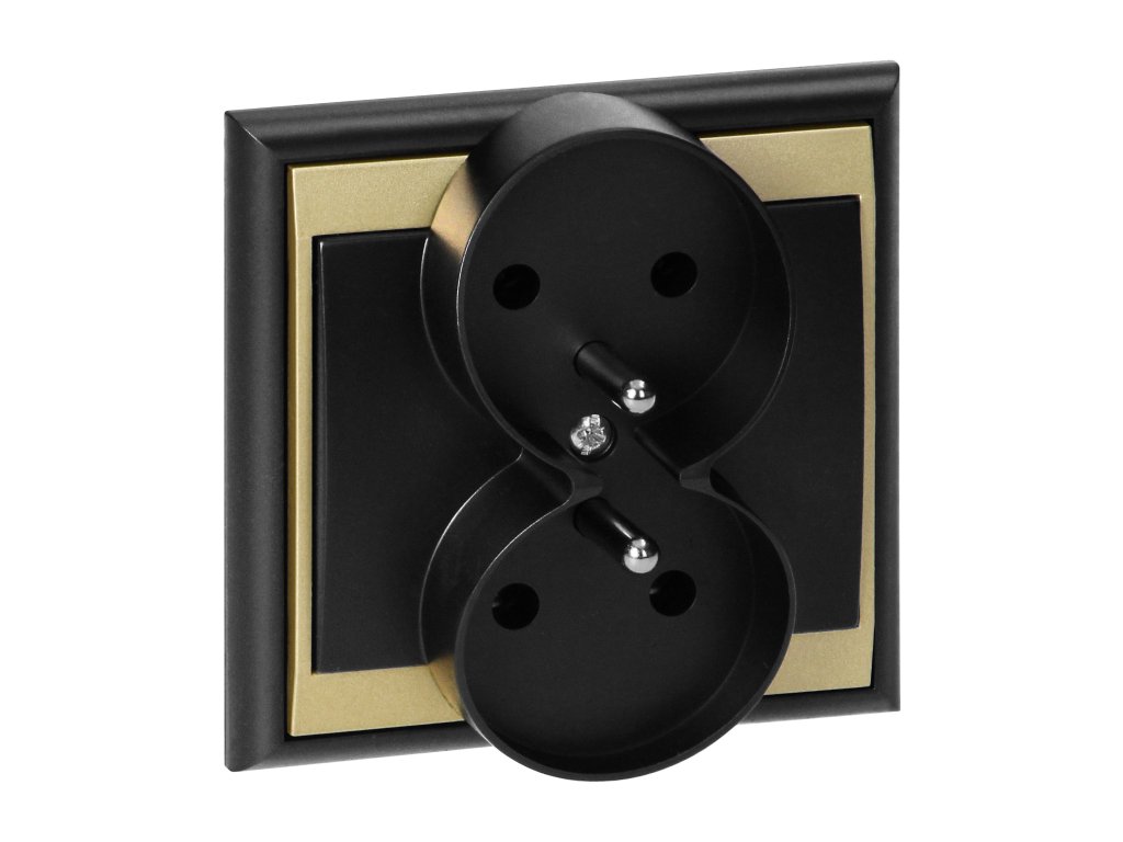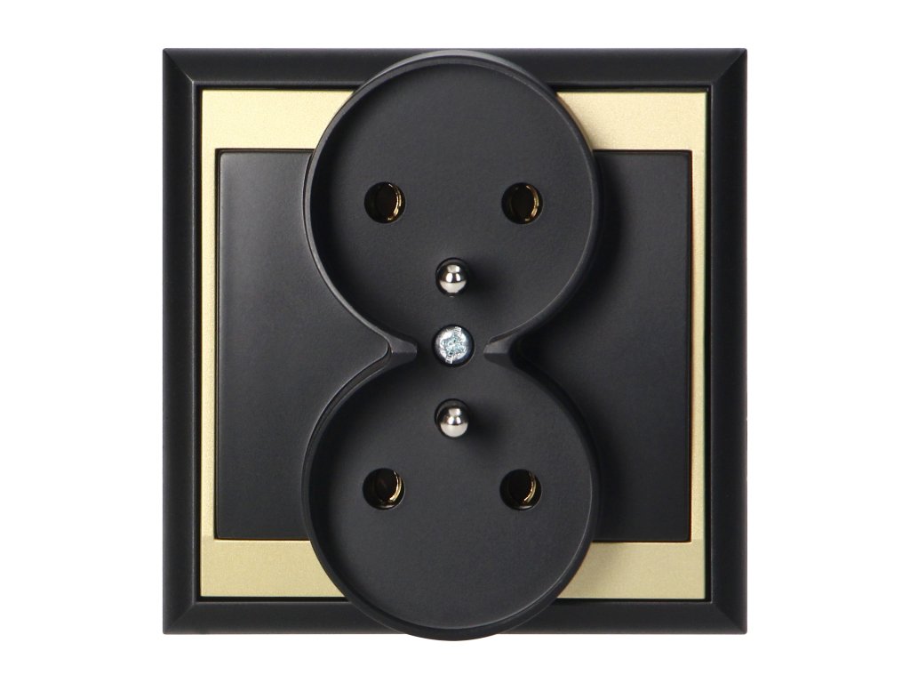 Zapustená dvojzásuvka 2x2P+E Luna, 16A, 250V, PT-6LR, čierna/zlatá