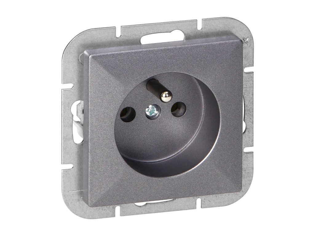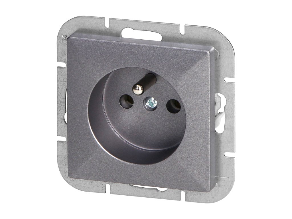 Zapustená jednoduchá zásuvka 2P+E Pearl, 16A, 250V, PT-16P, antracit