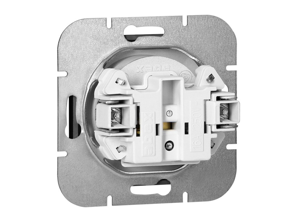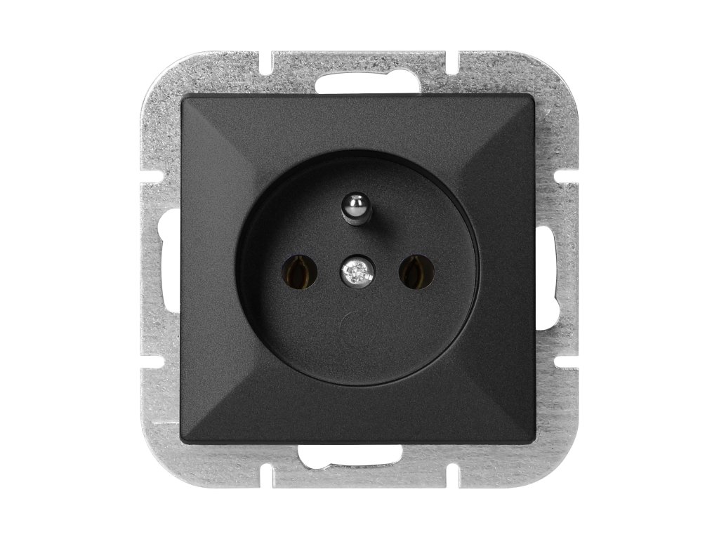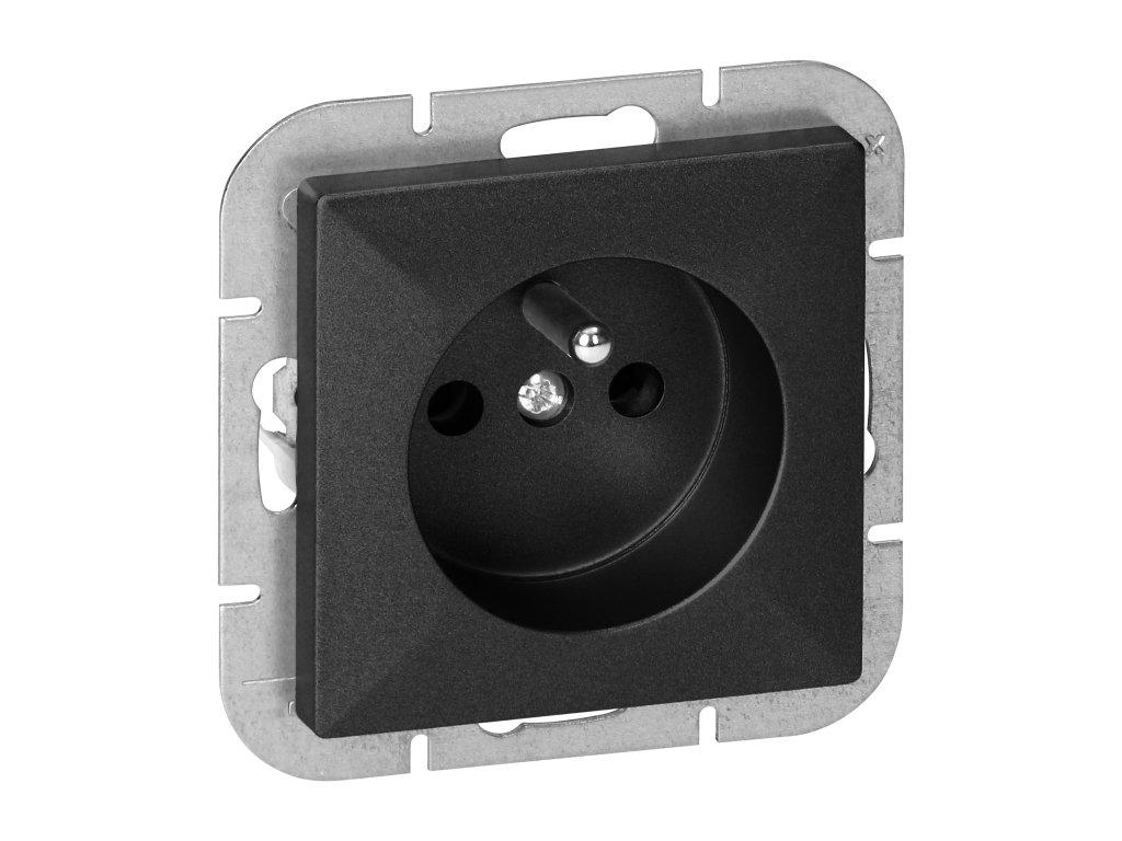 Modulárna séria so symetrickým rámovým systémom (pre 1-, 2-, 3-, 4-, 5-moduly), ktorá umožňuje montáž produktu vo vodorovnej aj zvislej polohe. Moderný mechanizmus rýchleho pripojenia (drôty sa pripájajú zatlačením priamo do tela) zaisťuje bezpečnú a spoľahlivú inštaláciu a odstránenie drôtov. Zásuvky sú vybavené tradičnými skrutkovými spojmi. Vnútorná konštrukcia svoriek zaručuje bezpečné pripojenie vodičov od 0,75 mm? do 2,5 mm?. Pevný a robustný montážny mriežkový systém a vysokokvalitné samoťahacie prvky umožňujú stabilnú a bezpečnú inštaláciu v krabici. Špeciálne pružinové prvky uľahčujú osadenie rámu do tela.Jednoduchá zásuvka francúzskeho typu, 2P+E. Určená na zapustenú montáž. Mala by sa používať v interiéri (IP20).