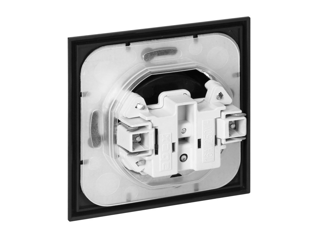 Zapustená jednonásobná zásuvka 2P+E, odolná voči poveternostným vplyvom s krytom Luna, 16A, 250V, PT-16LH, čierna