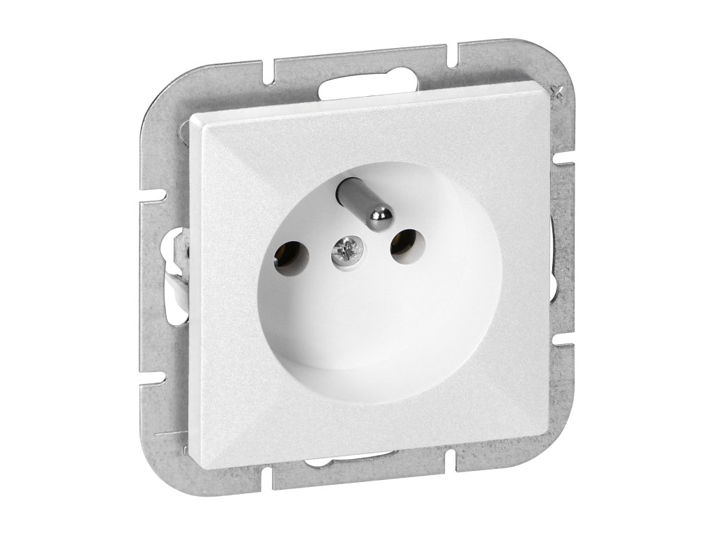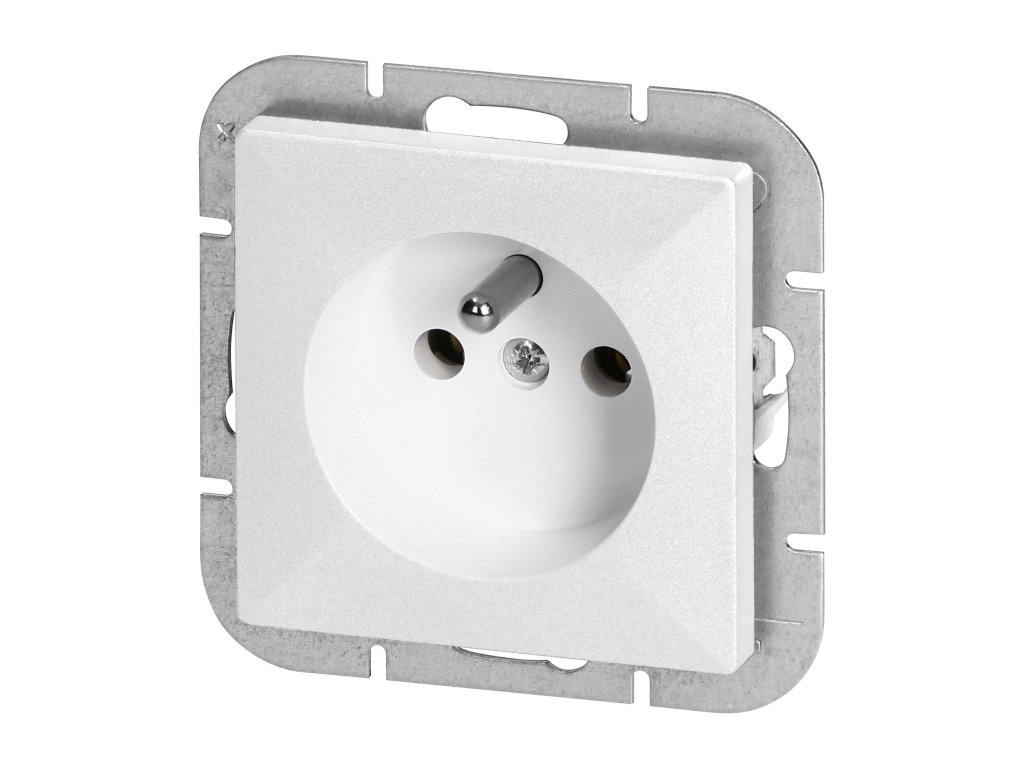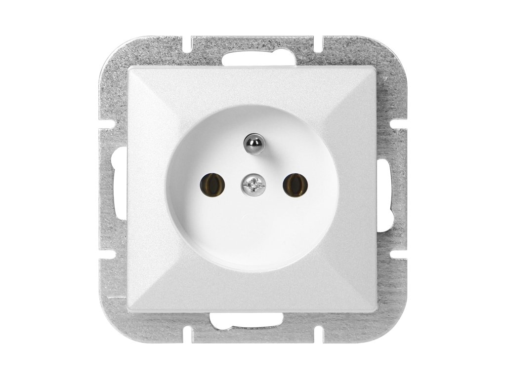Jednoduchá francúzska zásuvka typu, 2P+E. Navrhnutá na zapustenú montáž. Mala by byť používaná v interiéri (IP20).