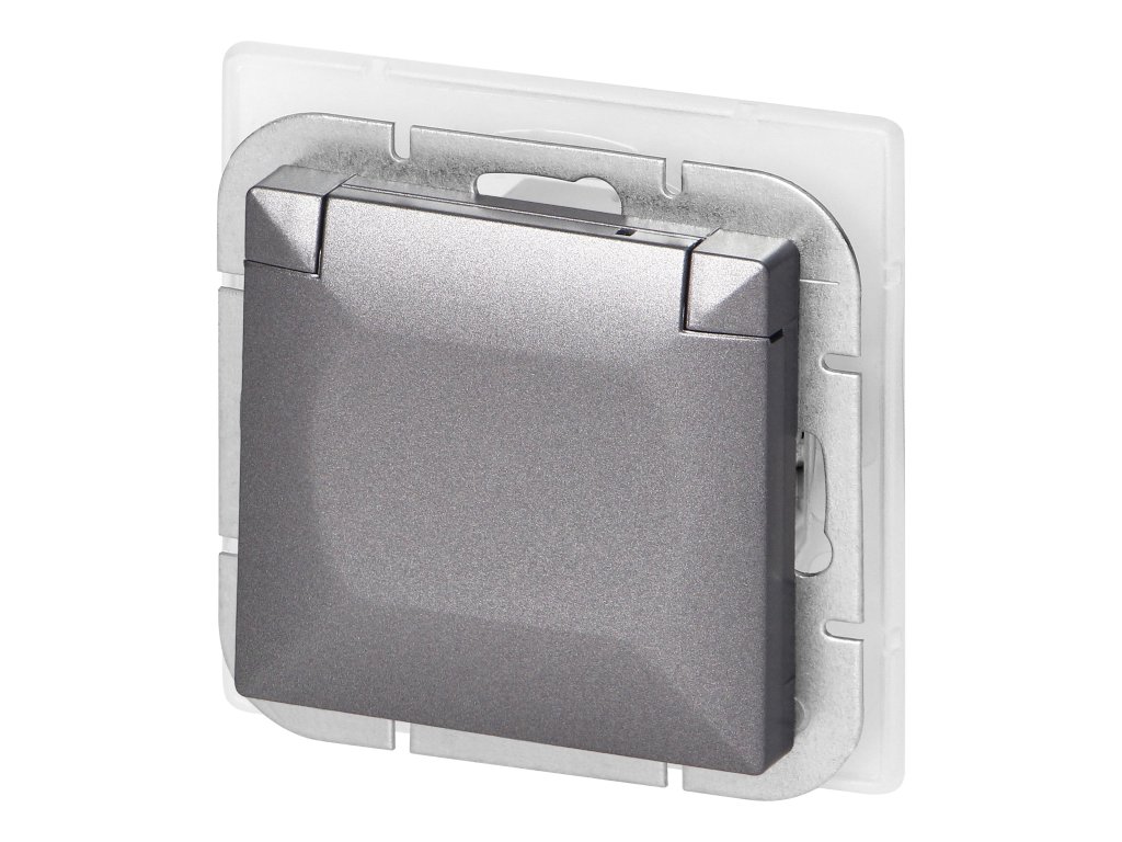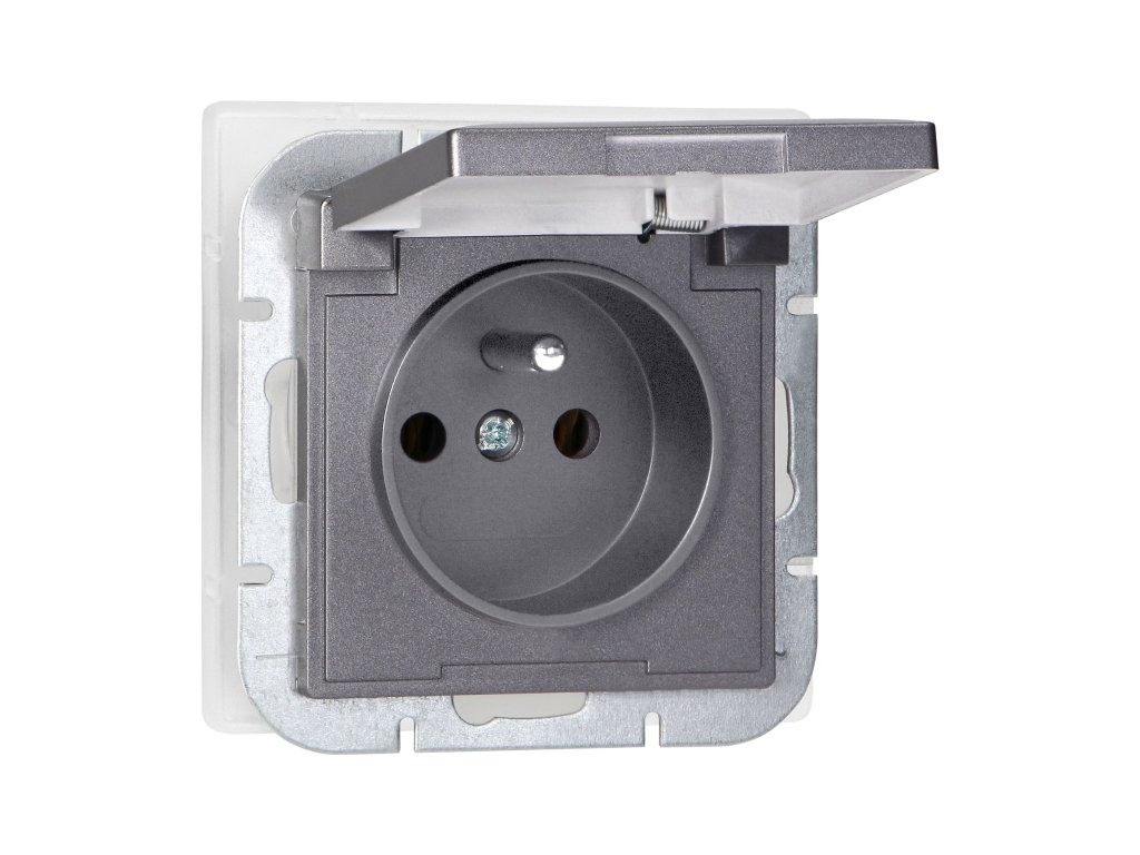 Zapustená jednopólová zásuvka 2P+E odolná voči poveternostným vplyvom s krytom Pearl, 16A, 250V, PT-16PH, antracit
