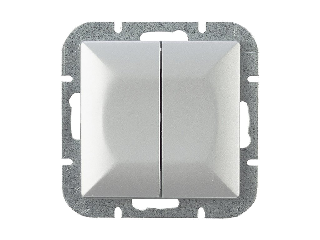 Zapustený dvojtlačidlový spínač Pearl, 10A, 250V, WP-2P, strieborný