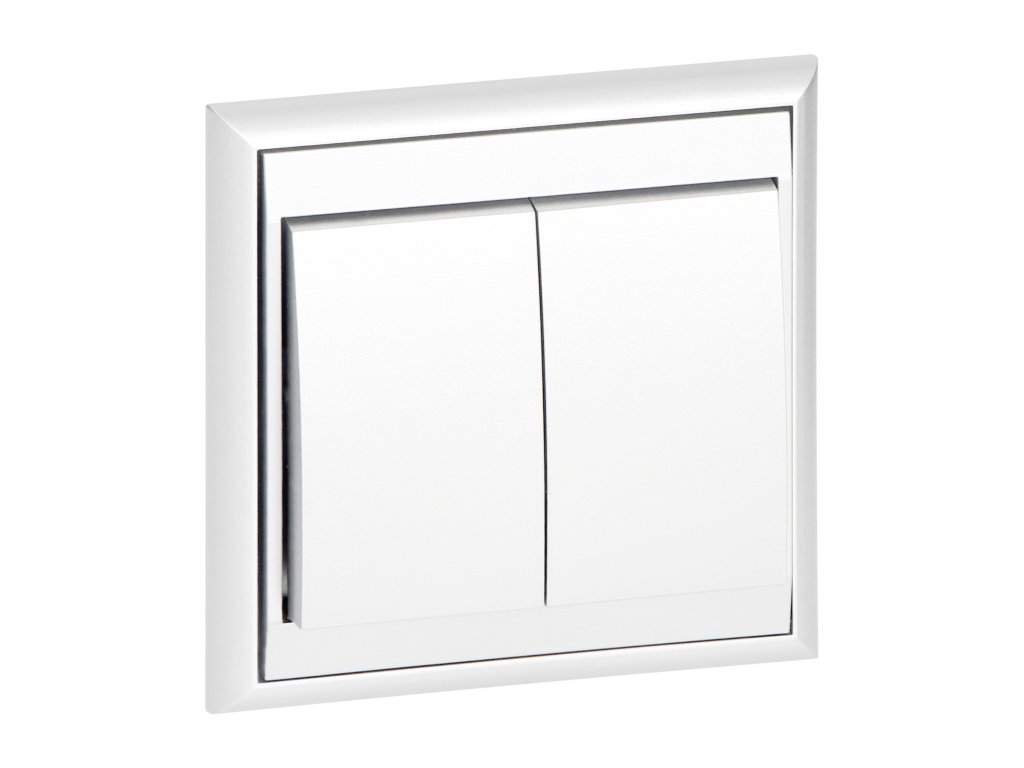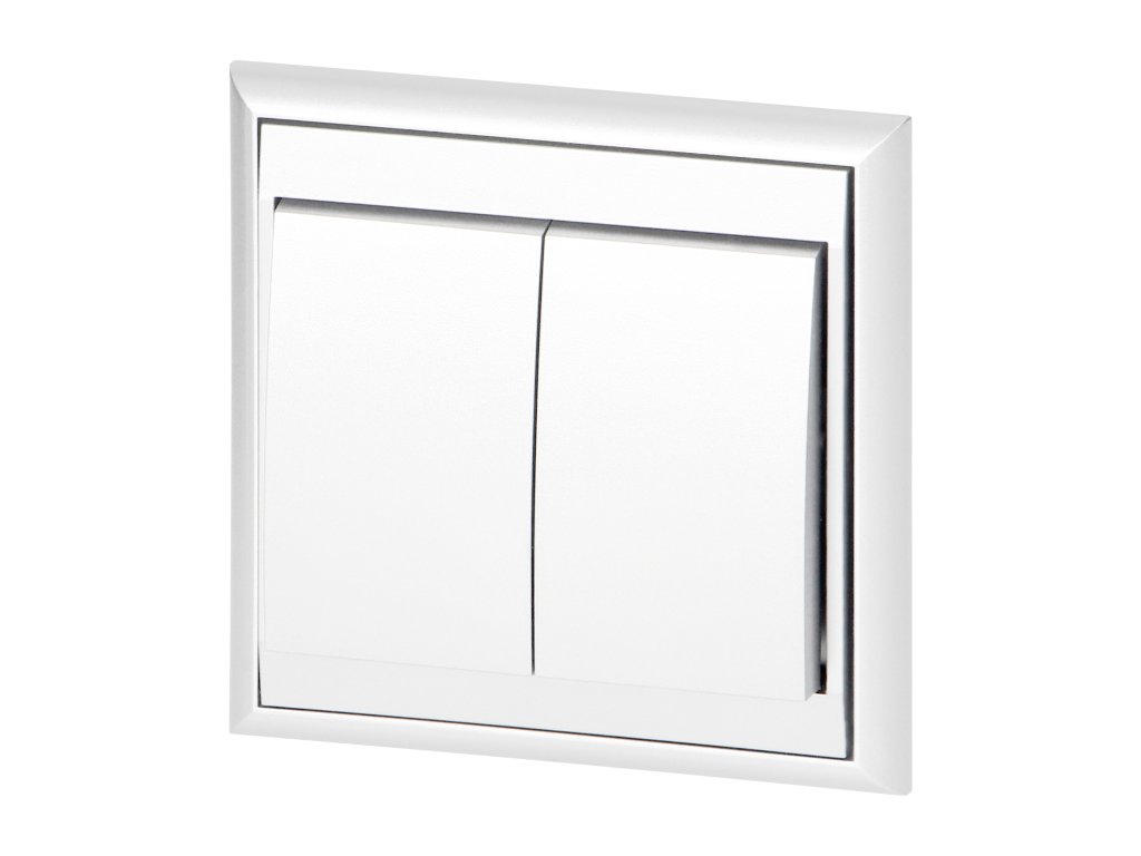 Dvojtlačidlový vypínač je prispôsobený na zapustenú montáž. Produkt sa používa na ovládanie osvetlenia, napríklad zloženého z lustrov a tradičných alebo moderných LED žiaroviek. Umožňuje zapínanie a vypínanie osvetlenia, rozdeleného do dvoch alebo viacerých zón. Mal by byť používaný v interiéri (IP20).